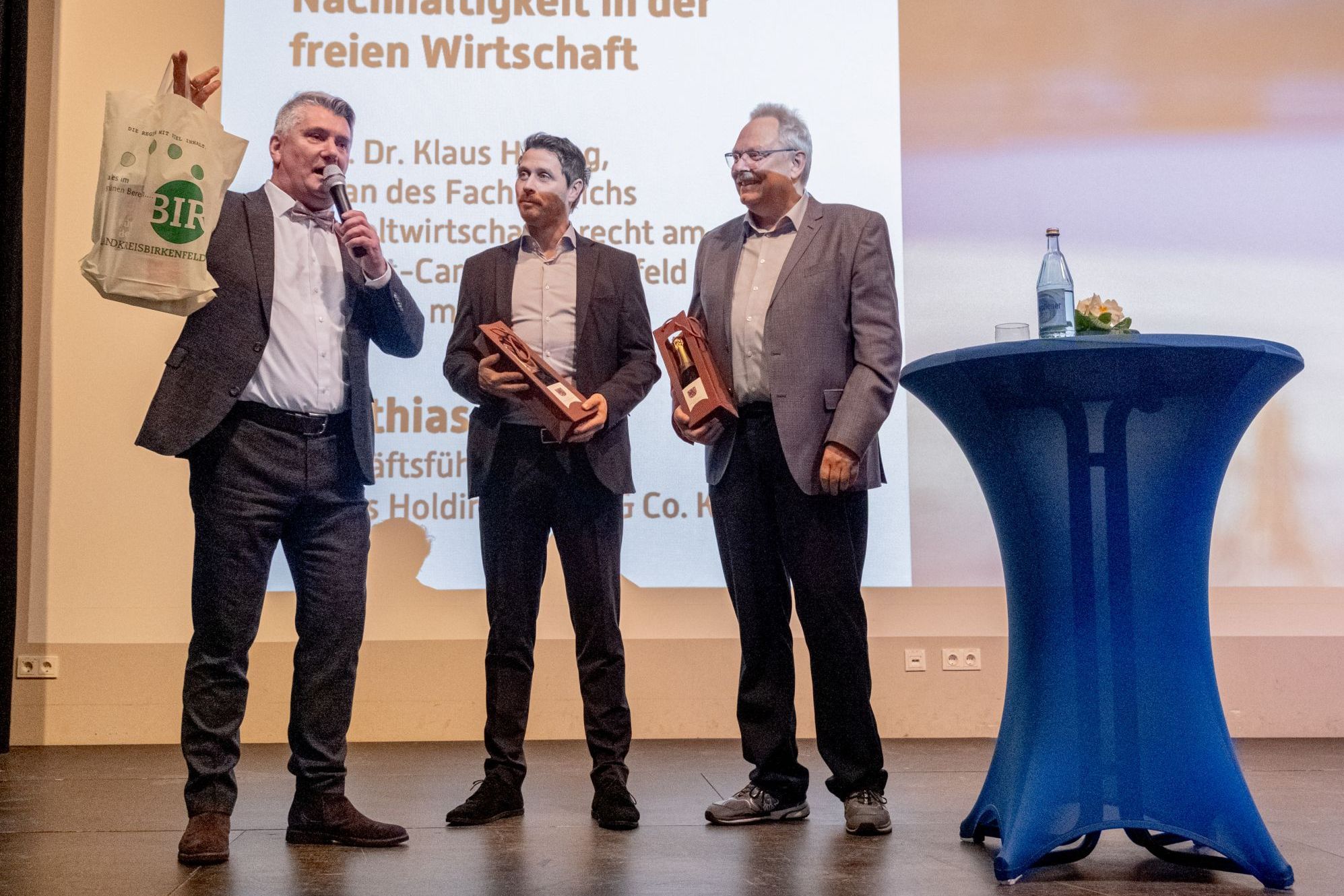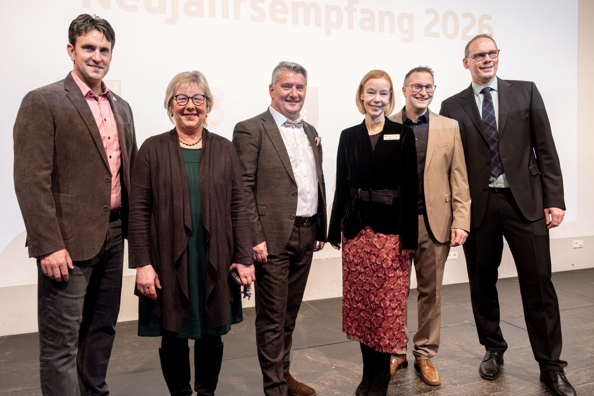 Auch der Bürgermeister der Verbandsgemeinde Birkenfeld, Matthias König, unterstrich die Bedeutung eines engen Zusammenhalts. „Wir müssen auf dem eingeschlagenen Weg weitergehen, um für alle Menschen in unserer Region das Bestmögliche herauszuholen“, sagte er. Auf der Bühne begrüßten zudem der Birkenfelder Stadtbürgermeister Hans-Peter Lampel, der Erste Beigeordnete der Ortsgemeinde Hoppstädten-Weiersbach, Dominik Werle, sowie Claudia Hornig, Kanzlerin der Hochschule Trier, die Gäste.