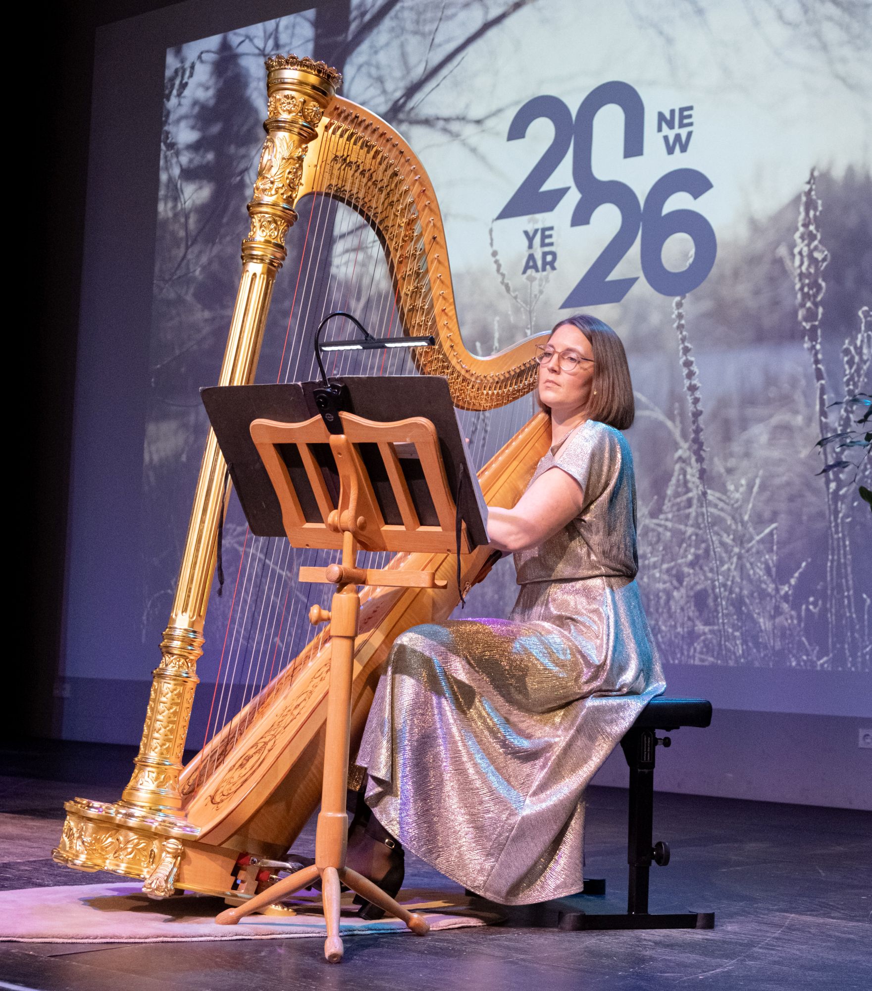 Musikalisch umrahmt wurde der Neujahrsempfang von Clara Dicke. Die Leiterin der Kreismusikschule Birkenfeld begeisterte das Publikum mit drei Stücken auf der Harfe. Nach dem bewusst kompakt gehaltenen offiziellen Teil nutzten die Gäste beim Fingerfood-Büfett im Foyer die Gelegenheit zu angeregten und ungezwungenen Gesprächen.