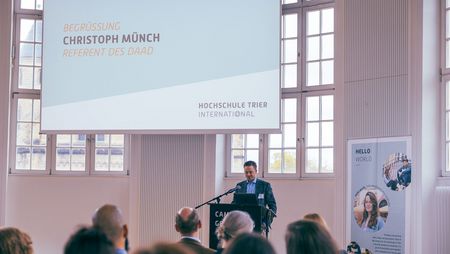 Zunächst begrüßte die Präsidentin der Hochschule Trier, Professorin Dorit Schumann, zusammen mit dem Dekan des Fachbereichs Gestaltung, Professor Matthias Sieveke, die zahlreichen Gäste in der Aula am Campus Gestaltung. Christoph Münch, Referent des DAAD, betonte im Nachgang die Bedeutung der internationalen Zusammenarbeit und die bisherigen Internationalisierungserfolge der Hochschule Trier: Mit insgesamt bereits vier erfolgreich eingeworbenen Projekten sei die Hochschule Spitzenreiterin im bundesweiten Vergleich.