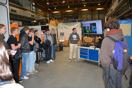 Zu Beginn erhielten die Teilnehmenden eine Einführung in die Digitale Produktentwicklung und Fertigung. Anhand anschaulicher Beispiele aus dem 3D-Druck und der Virtual Reality wurde verdeutlicht, wie digitale Werkzeuge heutige Entwicklungs- und Fertigungsprozesse prägen und beschleunigen. Aufbauend darauf bot eine Führung durch die Maschinenhalle die Gelegenheit, moderne Maschinen, Fertigungstechniken und Arbeitsabläufe direkt vor Ort kennenzulernen und offene Fragen zu klären.