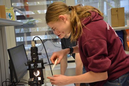 Nach dem gemeinsamen Mittagessen richtete sich der Blick auf die Medizintechnik. Im entsprechenden Labor wurden EKG-Signale mithilfe eines Biosignalverstärkers gemessen und ausgewertet, wodurch die enge Verbindung zwischen Technik und Medizin anschaulich sichtbar wurde. Darüber hinaus kam ein Kontaktwinkelmessgerät zum Einsatz, mit dem sowohl plasmabehandelte als auch unbehandelte Proben untersucht und miteinander verglichen wurden. Die Ergebnisse zeigten eindrucksvoll, wie Oberflächenbehandlungen Materialeigenschaften verändern und welche Bedeutung solche Verfahren für medizinische Anwendungen besitzen.