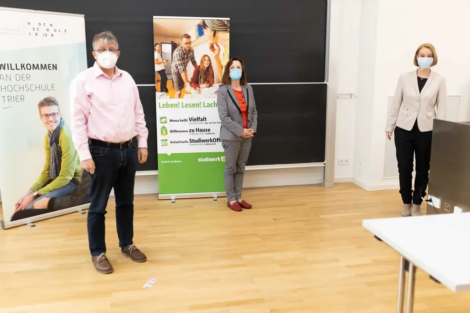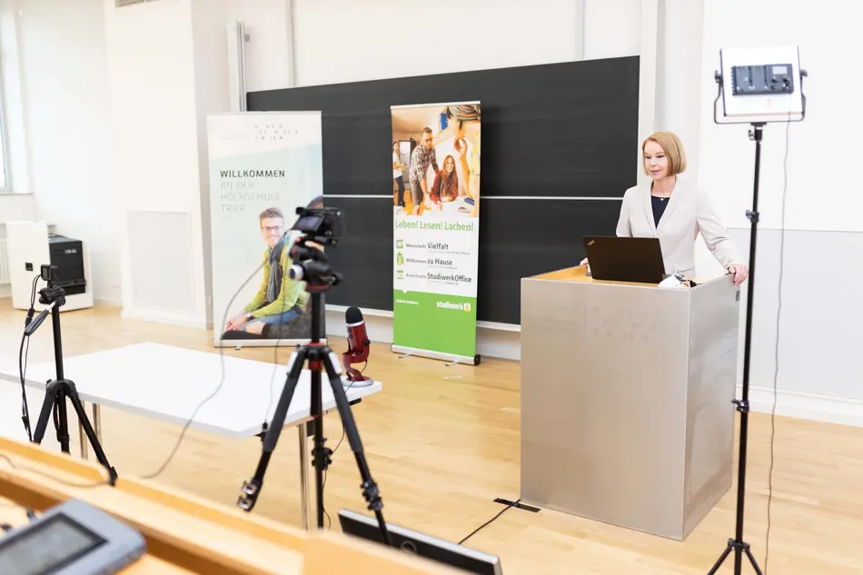 In dieser besonderen Zeit wurden die Studienanfänger*innen pandemiebedingt nun zum dritten Mal in Folge digital willkommen geheißen. Live aus dem Hörsaal richteten die Präsidentin der Hochschule Trier, Frau Prof. Dr. Dorit Schumann, die Bürgermeisterin der Stadt Trier, Frau Elvira Garbes und der Geschäftsführer des Studierendenwerkes, Herr Andreas Wagner, herzliche Grußworte an die Studierenden. „Es freut uns sehr, dass sich so viele Studienanfänger*innen für ein Studium an der Hochschule Trier entschieden haben. Die Lehrenden haben durch ein Jahr Erfahrung mit der Pandemiesituation neue Routinen und Lehrkonzepte entwickelt, um für alle Studierenden bestmögliche Studienvoraussetzungen in digitaler Form zu schaffen“, so die Präsidentin Prof. Dr. Dorit Schumann.