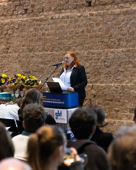 Bei der mit über 200 Besucher*innen gut besuchten Vernissage erläuterten nach Grußworten der Vorständin der gbt, Frau Sybille Jeschonek und des Baudezernenten der Stadt Trier, Herr Dr. Thilo Becker, sowie einem Vortrag von Frau Prof. Petra Riegler-Floors zum Thema „Strategien nachhaltigen Bauens“ fünf Studierende ihre Arbeiten.