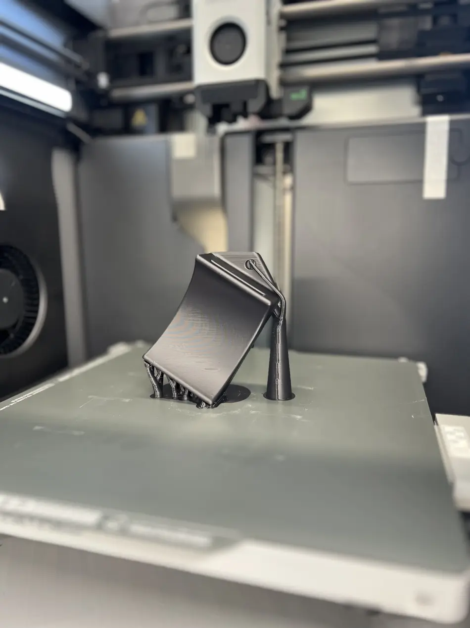 Letzte Woche stellten wir euch ein Projekt vor, bei dem Rehe automatisch einen Sender angelegt bekommen. Das Gehäuse für diesen Sender drucken wir auf unserem Drucker von Bambu Lab mit ASA (Acrylnitril-Styrol-Acrylat-Copolymer), einem Kunststoff, der einiges aushält und sehr witterungsbeständig ist. Im Video seht ihr, wie acht Gehäuse gleichzeitig auf einer Plattform gefertigt werden. Sie sind übrigens so schräg ausgerichtet, damit in dem Schlitz, der fürs Halsband vorgesehen ist, keine Stützen benötigt werden. Es wäre sehr schwierig, diese zu entfernen.