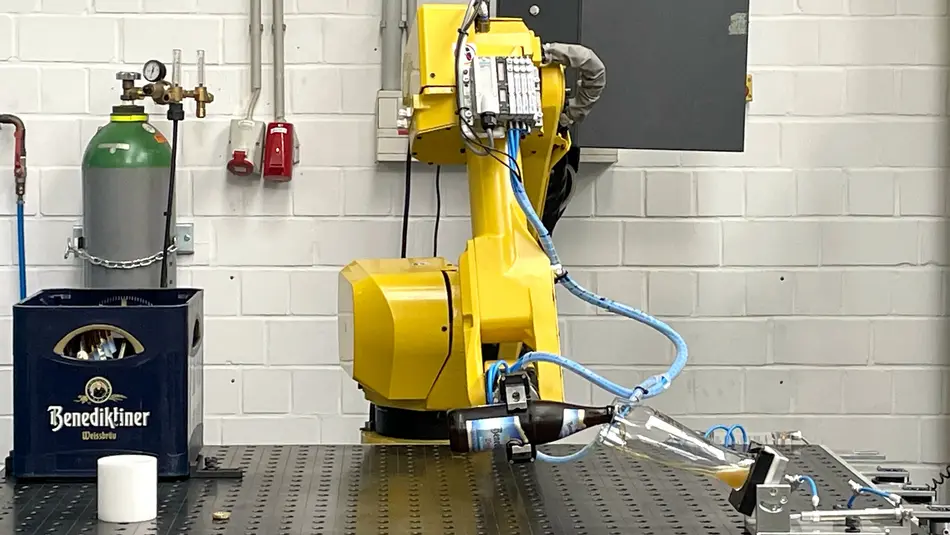 Eine Schnitzeljagd führte die Studierenden im Anschluss zu dem Forschungsgroßgerät dynamischer Fahrsimulator FaSiMo (Prof. Dr. Jörn Schneider, https://www.hochschule-trier.de/informatik/forschung/projekte/fasimo), einem Radardemonstrator (Prof. Dr. Andreas Diewald) und einem Industrieroboter (AkadR Michael Hoffmann) in der Maschinenhalle, der ein vom Fachbereich Informatik gestiftetes kühles Getränk ausschenkte.
