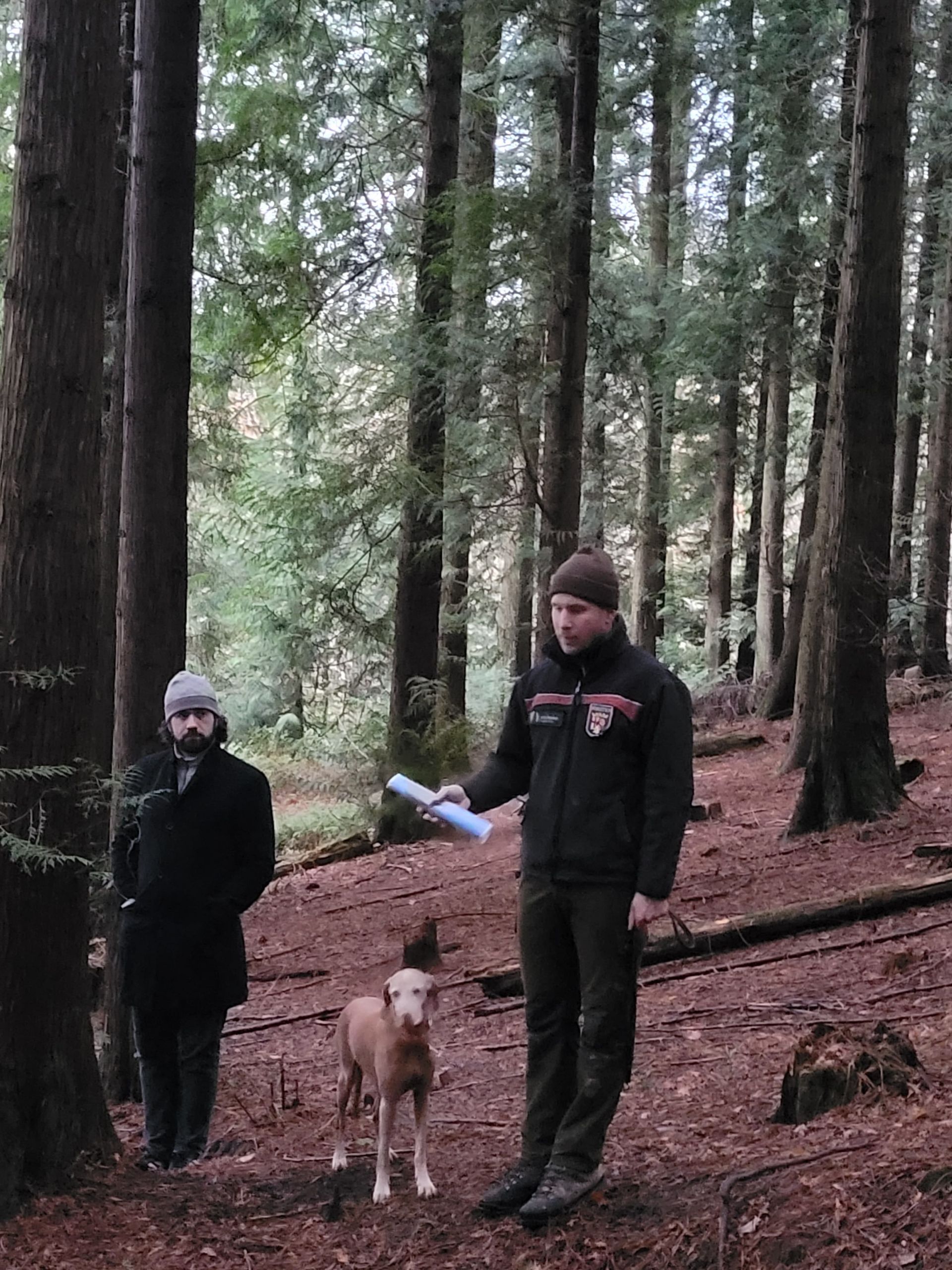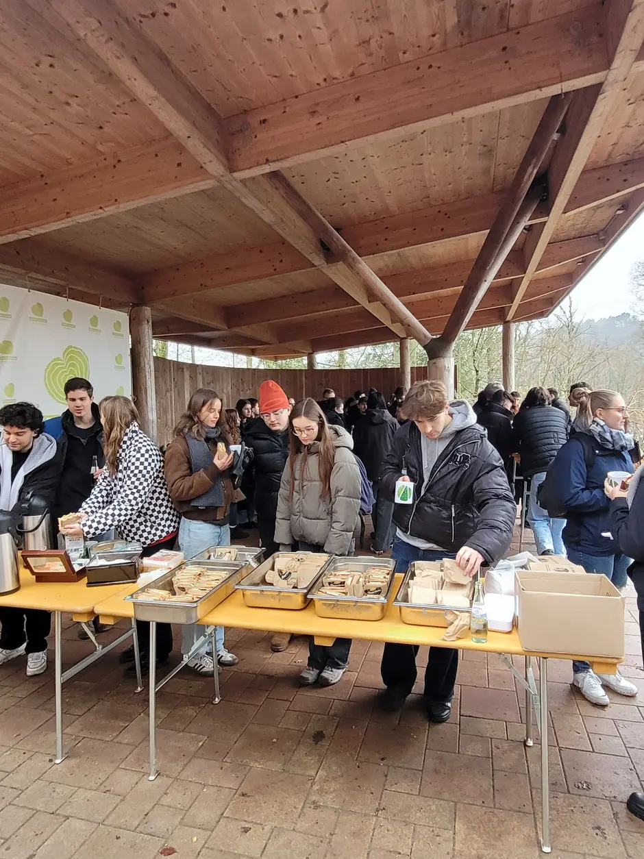Fast die gesamte Wertschöpfungskette Holz an einem Tag: kurz vor Weihnachten erkundeten 60 Studierenden aus dem Bachelor- und dem Master-Studiengang Architektur zusammen mit Prof. i.V. Marcel Balsen (Lehrgebiet Nachhaltiger Holzbau) und Prof. Petra Riegler-Floors (Lehrgebiet Zirkuläres Bauen, Konstruktion und Material) zunächst in einem 2-stündigen Rundgang in Kleingruppen den Trierer Meulenwald. Ausgebildete Waldpädagogen sowie Förster des Forstamts Trier-Quint erläuterten die Auswirkungen des Klimawandels auf den heimischen Forst und erklärten verschiedene Maßnahmen des Waldumbaus. Mit allen Sinnen konnten die Studierenden die einzelnen Baumarten sowie das komplexe Ökosystem „Wald“ erfahren.