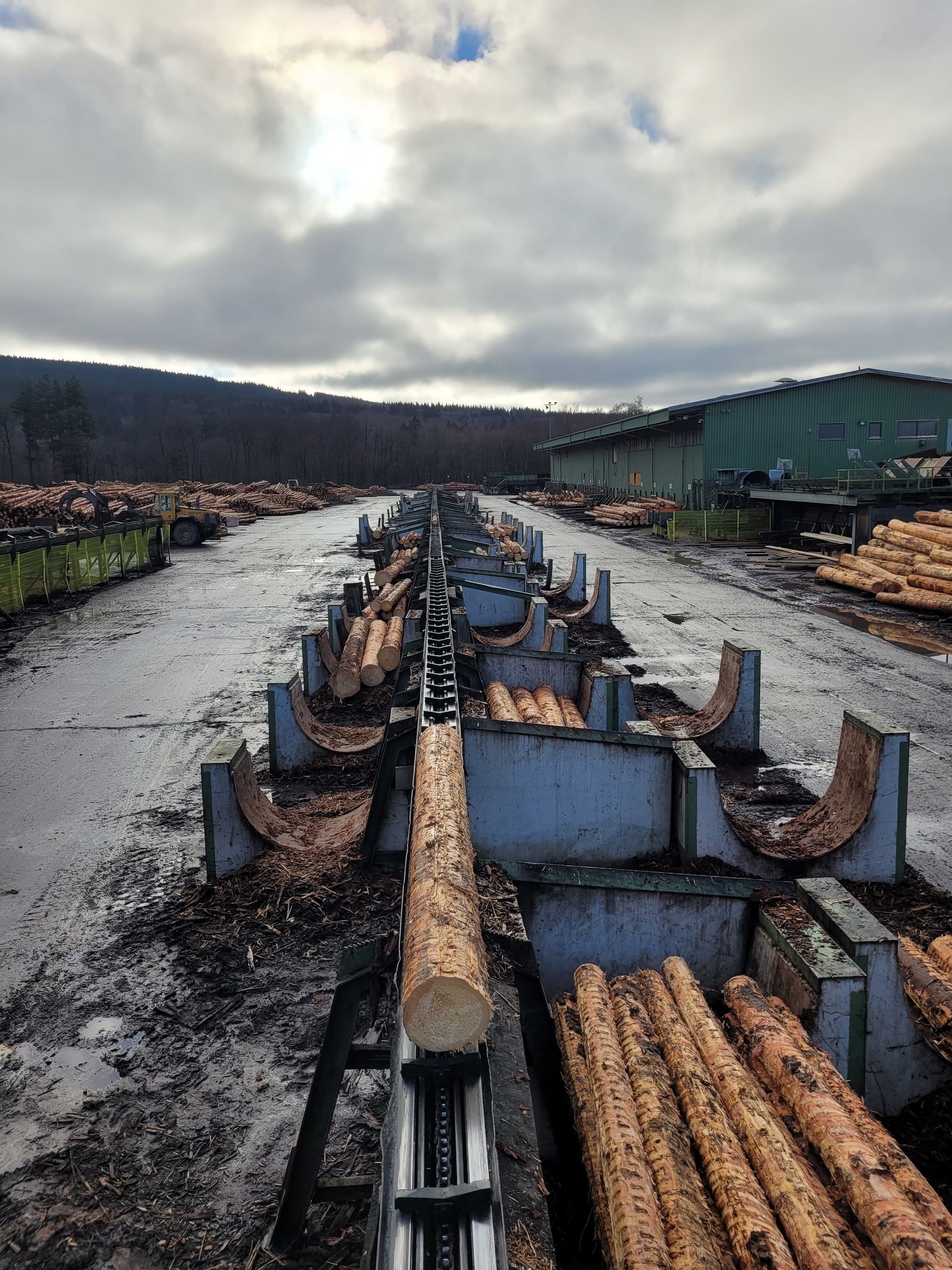 Nach einer kurzen Stärkung am neuen Meulenwaldhaus des Forstamts von baurmann dürr architekten ging es weiter nach Morbach zu ELKA-Holzwerke und Eugen Decker Holzindustrie. Bei ELKA konnten die Studierenden nach einem informativen Einführungsvortrag der Geschäftsführerin Larissa Kuntz den Weg der Baumstämme von der vollautomatischen Säge-Anlage zur Hobelanlage und ins Spanplattenwerk verfolgen, wo jegliche Sägeabschnitte zu hochwertigen Bauprodukten wie Span- und ESB-Platten verarbeitet werden.