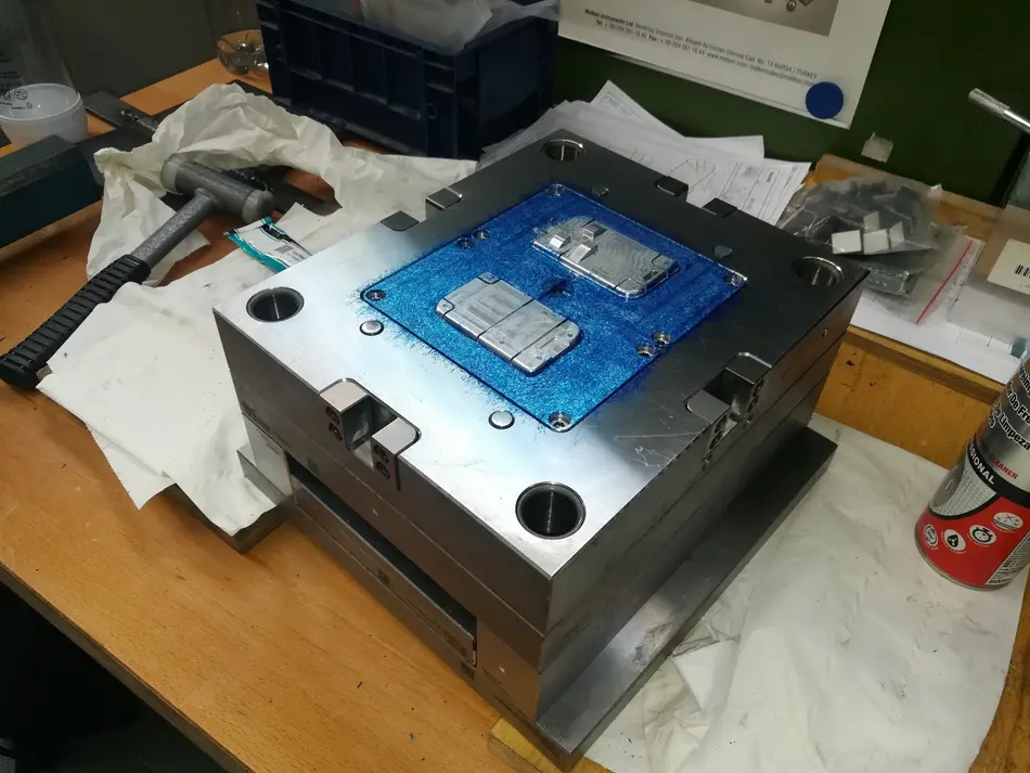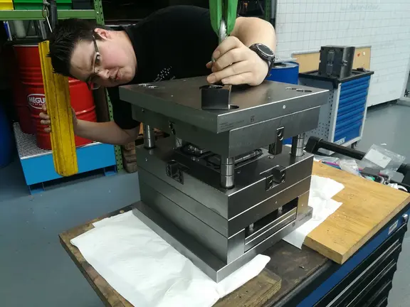 Nach einer grundlegenden Designänderung des Gehäuses wurde ein neues vollständig überarbeitetes Spritzgusswerkzeug für das Gedächnisspiel "weMINTo" eintwickelt und konstruiert. Nach diesen Konstruktionsdaten soll in diesem Projekt das Spritzgusswerkzeuges mit folgenden Anforderungen gefertigt und in Betrieb genommen werden: