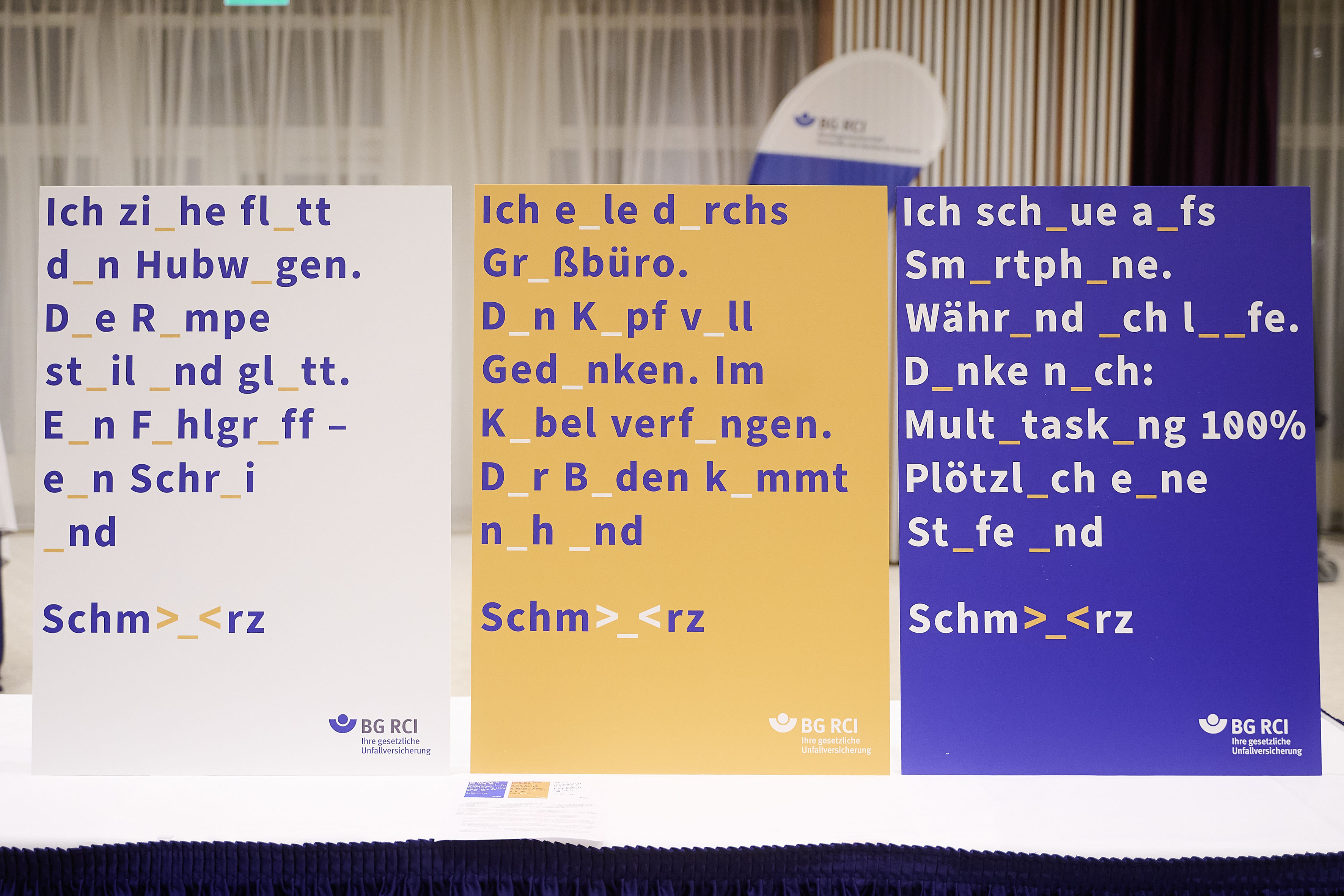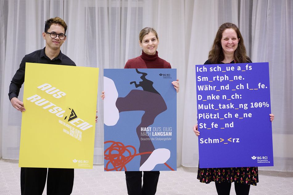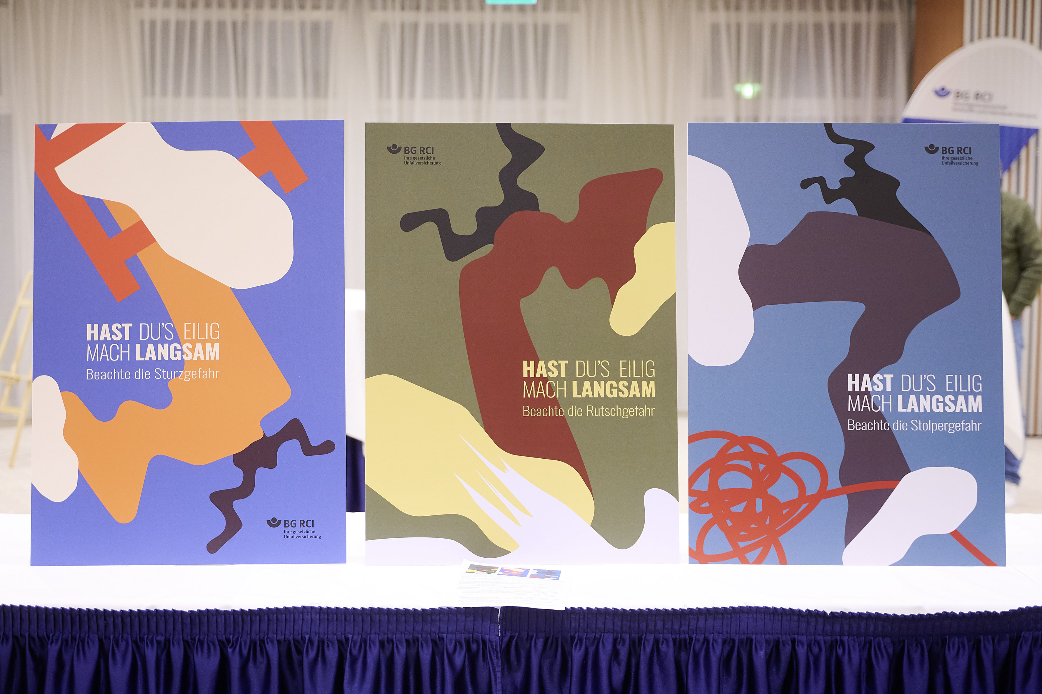 Besonders überzeugte dabei die Arbeit von Nina Maria Drangmeister von der Hochschule Trier, die mit ihrer sensiblen und reflektierten Gestaltung einen der prämierten Plätze belegte. Stolpern, Rutschen und Stürzen zählen zu den häufigsten Unfallursachen im Arbeitsalltag: Mehr als jeder fünfte meldepflichtige Arbeitsunfall geht darauf zurück. Was oft harmlos erscheint, kann schwerwiegende gesundheitliche und wirtschaftliche Folgen haben – von Verletzungen über lange Ausfallzeiten bis hin zu hohen Behandlungskosten. Grund genug für die Berufsgenossenschaft Rohstoffe und chemische Industrie (BG RCI), dieses wichtige Präventionsthema in den Mittelpunkt des Wettbewerbs zu stellen.