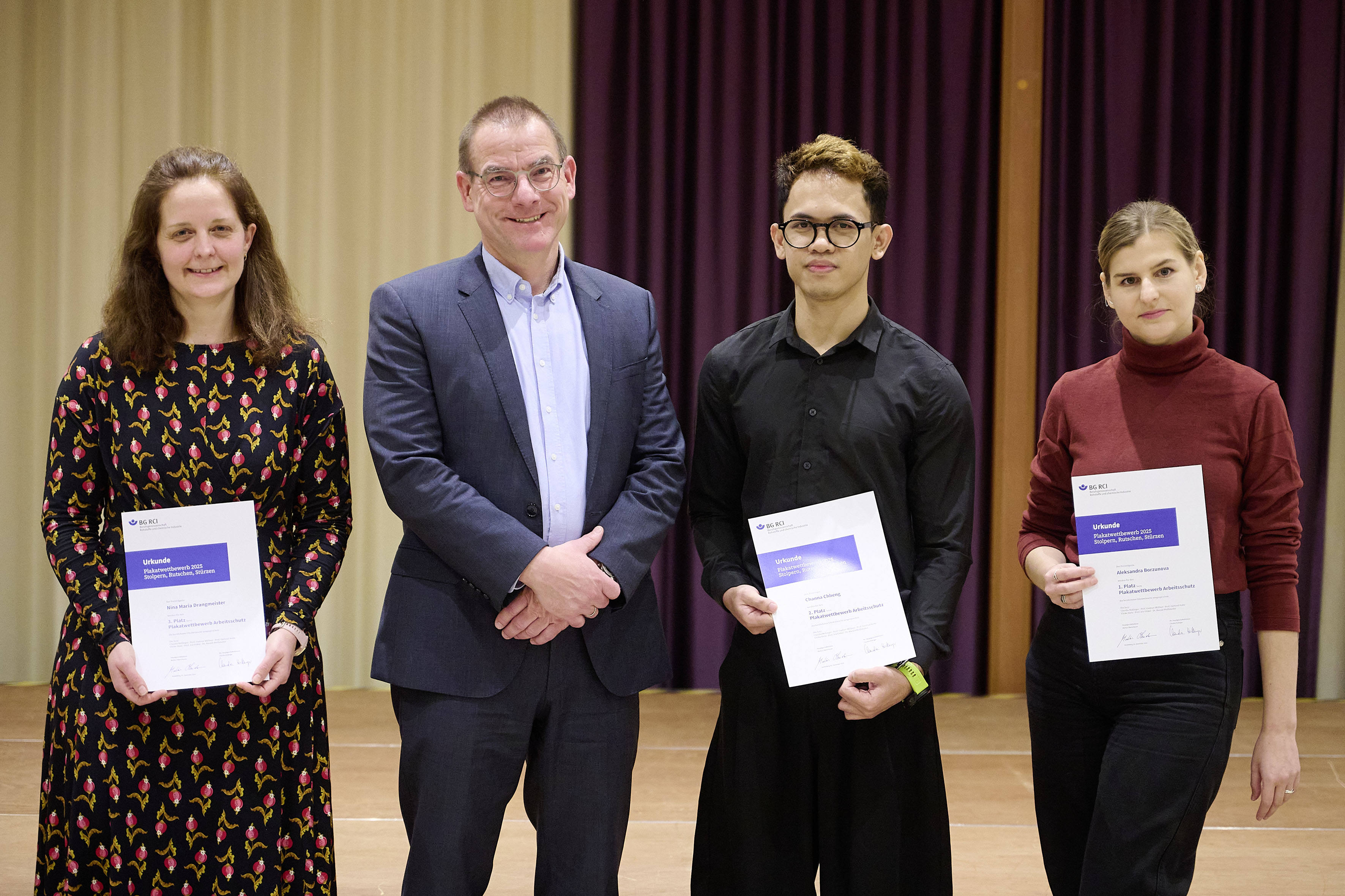 Der Jury gehörten Prof. Gertrud Nolte (Fakultät Gestaltung Würzburg), Prof. Gudrun Müllner (Hochschule Augsburg) und Prof. Iris Utikal (Köln International School of Design) an. Seitens der BG RCI wirkten Claudia Hollinger (stellvertretende Hauptgeschäftsführerin), Ulrike Stute (Leiterin Stabsbereich Kommunikation) und Dr. Harald Wellhäußer (Präventionsleiter) mit.