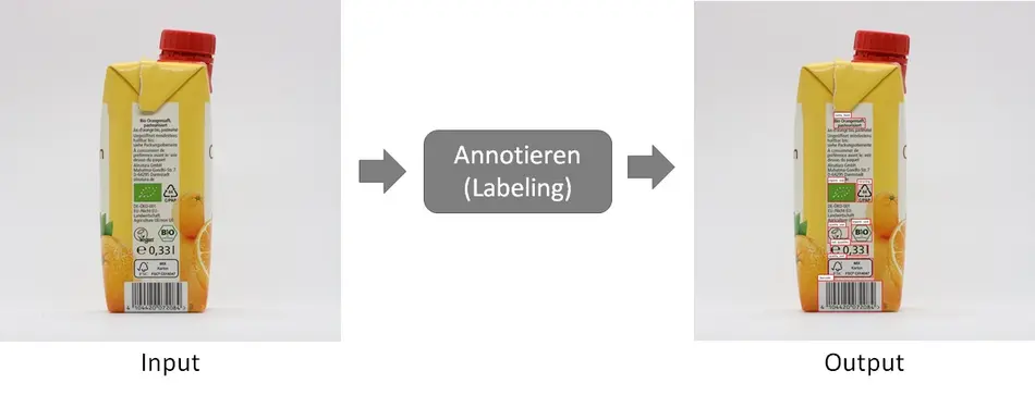 Für die automatische Informationsextraktion wird an maschinellen Lernverfahren geforscht, die mit annotierten Bilddaten trainiert werden müssen. Hierzu werden die verschiedenen relevanten Bereiche auf einem Produktbild per Hand markiert und klassifiziert. Derzeit werden 28 verschiedene Informationsobjekte auf Produktbildern gekennzeichnet. Die Arbeitsgruppe um Professor Krieger hat einen Prozess ausgearbeitet, um die Annotationen möglichst effizient an Produktbilder anbringen zu können.