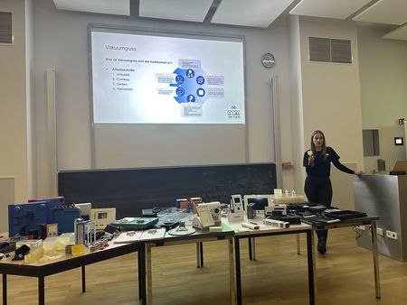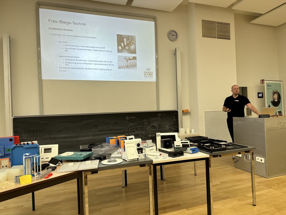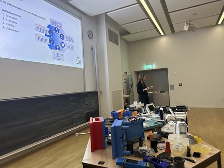 Gastgeber war der Fachbereich Technik, der die Fachvorträge in die laufenden Vorlesungsinhalte der Module Fertigungstechnik, Werkzeugmaschinen, Additive Fertigung und Unternehmensökonomie integrierte.