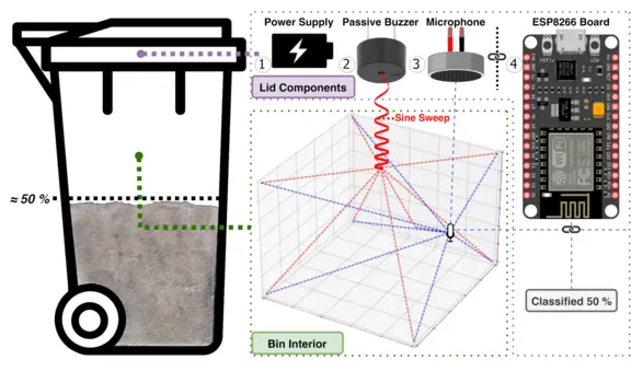 In dieser Arbeit wird eine innovative Methode zur Bestimmung des Füllstands von Behältern, wie Mülltonnen, vorgestellt, die einen wichtigen Aspekt des Abfallmanagements adressiert. Die Methode kombiniert räumliche Impulsantwortanalyse mit maschinellem Lernen und erreicht eine Klassifikationsgenauigkeit von über 90% auf einer Entwicklungsplatine. Durch den Einsatz kostengünstiger, energieeffizienter Hardware bietet sie eine nachhaltige, lokal einsetzbare Lösung, die operative Effizienzen optimiert und komplexe Klassifikationsaufgaben ohne externe Unterstützung ermöglicht.