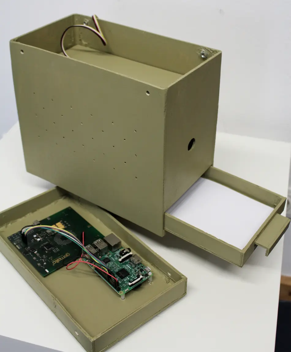 In der konkreten Umsetzung wird in dem gefertigten Gehäuse eine Kamera verbaut, die senkrecht von oben Bildaufnahmen des Lockstoffstreifens macht. Die von den Studierenden entwickelte Software kann nun mittels Bilderkennung/Mustererkennung die Anzahl an Traubenwicklern ermitteln. Da sich die dunklen Traubenwickler farblich von dem weißen Lockstoffstreifen absetzen, kann die Software die hellen Pixel als Lockstoffstreifen und die dunklen als Traubenwickler identifizieren. Mittels Bildanalyse kann die Anzahl dunkler Pixel bestimmt werden, die einen groben Überblick über die Menge der vorhandenen Schädlinge auf dem Lockstoffstreifen vermittelt. Zudem ist das Programm in der Lage, das Muster des Traubenwicklers selbstständig zu erkennen und somit auf die Gesamtanzahl der auf dem Lockstoffstreifen befindlichen Traubenwickler zu schließen.