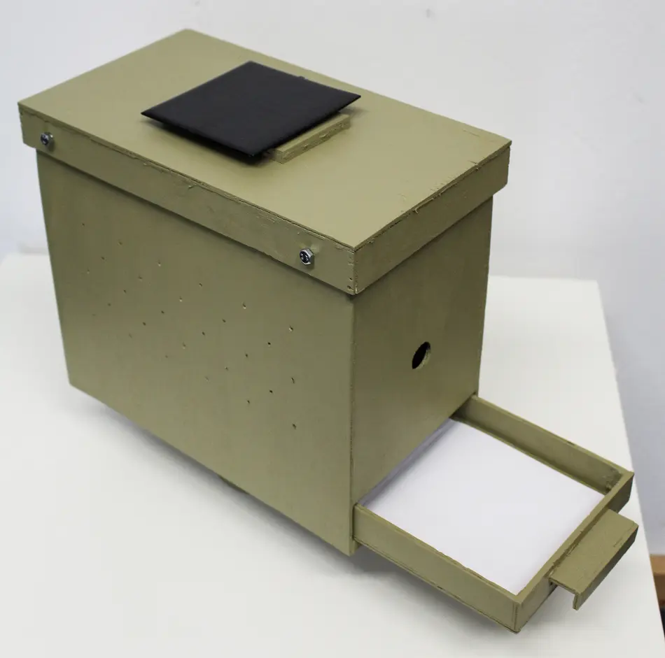 Die Energieversorgung wird über eine Solarzelle sichergestellt, die auf dem Dach des Gehäuses angebracht ist. Darüber hinaus liefern verschiedene Sensoren weitere Messdaten wie Temperatur oder Luftfeuchtigkeit.