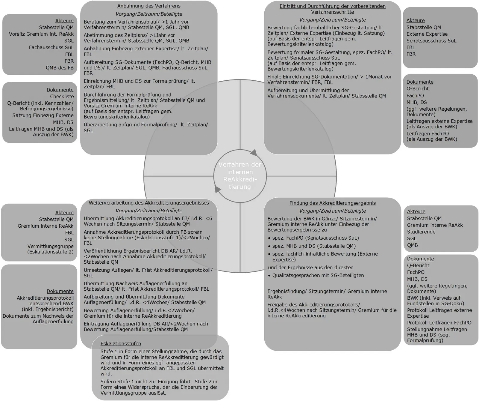 Neben der fachinhaltlichen Bewertung findet im Zuge der Vorbereitung ebenfalls die Bewertung formaler Aspekte im Sinne der Bewertung der FachPO statt. Diese wird durch den Senatsausschuss SuL vorgenommen und basiert auf den dazu einschlägigen Bewertungskriterien Diese Bewertung wird ebenfalls in das weitere Verfahren der internen (Re)Akkreditierung eingesteuert.