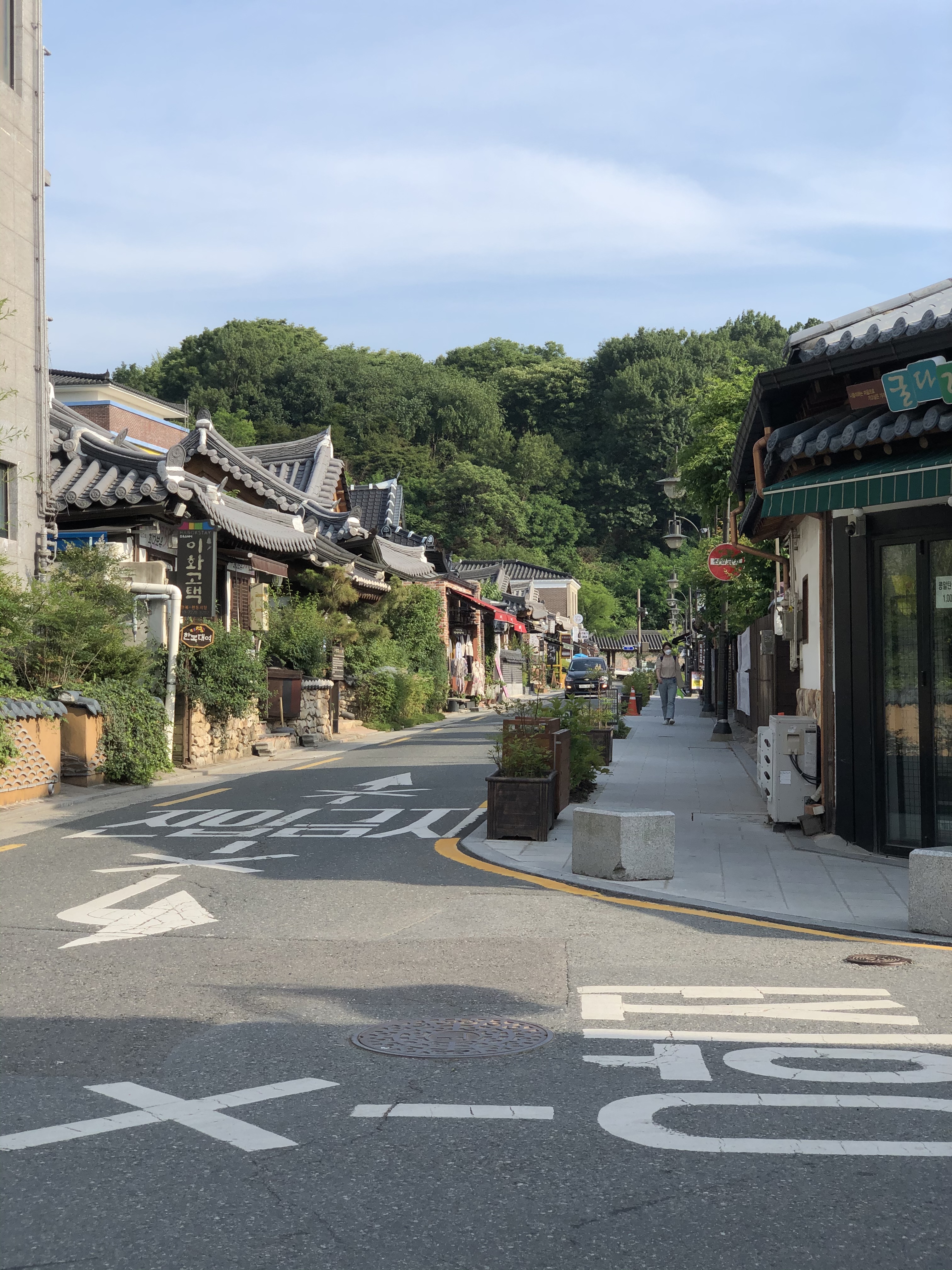 Jeonju ist wie man auf english sagt ein hidden gem, da nicht viele Touristen dort hinreisen. Wir haben Jeonju von unseren koreanischen Kommilitonen empfohlen bekommen und konnten natürlich nicht nein sagen. Ich wusste bereits schon, dass Korea sehr viele Hanok Villiages hat, sogar in Seoul kann man welche sehen, aber wirklich dort drin zu leben war nur in Jeonju möglich. Doch was genau sind Hanok Häuser? Hanok Häuser sind traditionelle Häuser der koreanischen Oberklasse. Die Dächer sind so geformt, dass die Enden nach oben zeigen. Volkmünder sagen, die kurvigen Dächer dienen dazu, das Unglück oder die Bestrafung des Himmels, welches von oben kommt, abzuwehren. Der Geschichte nach wurden die ersten Hanok Häuser im 14. Jahrhundert in während der Joseon Dynastie erbaut. Nicht nur die Dächer der Hanok Häuser haben eine besondere Architektur, sondern das ganze Haus an sich hat eine tiefgründigere Bedeutung. So wurde steht darauf Acht gegeben, dass das Haus mit der mit der Natur in Harmonie steht. Dieses Prinzip nennen die Koreaner baesanimsu, das Prinzip der Harmonie, indem die Rückseite des Hauses sich einem Berg oder Wald zuwendet und die Vorderseite des Hauses nach dem Fluss gerichtet ist. Dies ist nicht nur in Korea, sondern generell in Asien sehr weit verbreitet. Man sagt, wenn die Rückseite des Hauses dem Berg „anliegt“ sorgt es für gute Energie und Kraft, der Fluss vor dem Haus sorgt für Ruhe und Austausch zwischen guter und schlechter Energie, mit dem Strom des Wassers wird das schlechte mit genommen und das Gute kommt dann rein und sorgt für eine gute Harmonie. Nebenbei hat es auch praktische Gründe, denn die Berge sorgen dafür, dass im Winter der Wind nicht durchbläst und durch den Fluss haben die Menschen leichten Zugang zu Wasser.