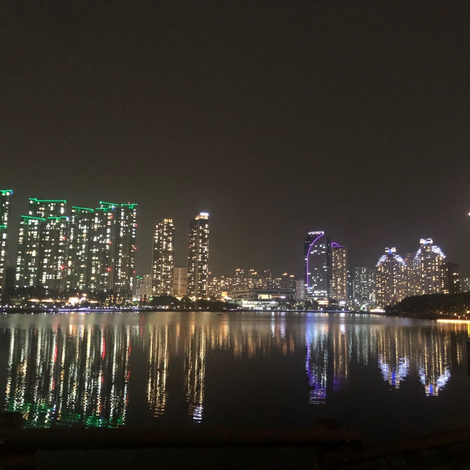 Dieser See ist auch unter dem Namen Gwanggyo Lake Park bekannt. Von der Ajou University braucht man ca. 20-25 min zu Fuß, um an den See zu kommen. Rund um den See herum gibt es eine große Auswahl an kleinen, aber sehr abwechslungsreichen Cafés, Restaurants, CVS oder Dessert Bars. Wir, meine Freunde, die ich hier in Korea kennengelernt habe, haben uns diesmal dazu entschieden Roast Chicken und Bake Chicken in dem Restaurant Oven Maru zu probieren. Wir hatten uns entschieden eine andere Variante von Chicken zu essen, dass wir alle Fried Chicken nicht mehr sehen konnten, da es das Gericht an jeder Ecke gibt und man nach einer Zeit zu viel davon gegessen hat. Das Restaurant OvenMaru liegt direkt am See und wir haben neben dem super leckeren Essen auch eine wunderbare Aussicht gehabt. Es ist in Korea üblich, dass Chicken& Beer Hand in Hand gehen und so hatten wir neben dem Essen noch Somaek bestellt. Somaek ist koreanisch und eine Abkürzung aus Soju (koreanischer Branntwein) und Maekju (Bier). Wir haben zusammen für das Essen und Getränke zusammen 56,000won bezahlt, umgerechnet ist es ca. 40€ für 3 Personen. Ich persönlich gehe gerne zu Dinner Zeiten an den See, denn neben der großen Auswahl an verschiedenen Gerichten, liebe ich die Aussicht, wenn es dunkel wird und alle Lichter angehen. Die bunten Lichter der Brücke oder die Lichter von den Hochhäusern machen den See zu etwas magischem und verleiht der Stadt etwas Besonderes.