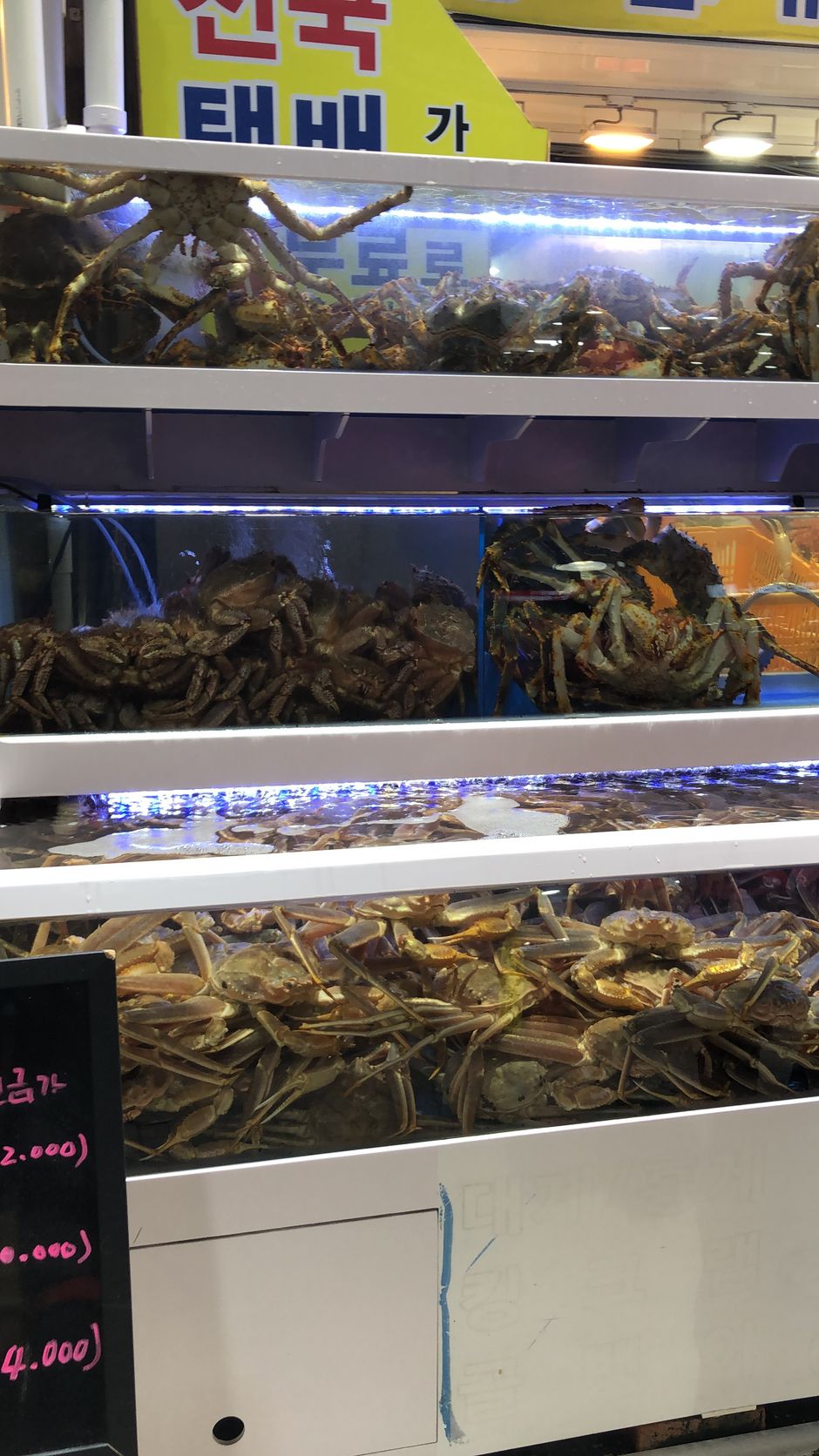 Neben dem Seoraksan Park ist Sokcho außerdem bekannt für seinen Fischmarkt. Dort gibt es neben lebendigem Fisch und Meeresfrüchten auch Restaurants, die diese frisch nach Wunsch zubereiten. Sokcho ist bekannt für sein Red Snow Crab und Sashimi, da diese frisch aus dem Meer geangelt bzw. gefangen werden. Natürlich mussten wir das auch probieren und haben uns Red Snow Crab Stew bestellt. Nach dem Essen sind auf den Expo Tower hochgefahren und konnten von dort das wunderbare Meer sehen.