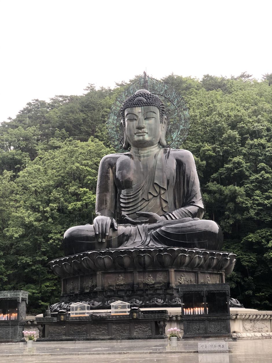 Sokcho ist relativ klein im Vergleich zu anderen Städten, wer aber Nationalparks und wandern liebt, sollte ein bis zwei Tage für den Park einplanen. Für die Stadt und den Strand reichen ein bis zwei Tage aus, wenn man sie langsam besichtigt. Wer etwas mehr Zeit mitbringt, kann noch den Naksansa Temple besichtigen. Dieser Tempel liegt außerhalb von Sokcho, ist aber definitiv einen Besuch wert. Von unserem Guest House sind wir mit dem Bus zum Tempel gefahren. Die Fahrt dauert ca. 45 min, aber brachte uns ganz nah an den Eingang. Dieser Tempel hat mehr als 1300 Jahre Geschichte hinter sich und viel ist heute noch zu sehen. Traurigerweise wurde ein Teil des Tempels 2005 durch ein Wildfeuer komplett zerstört. Das meiste wurde bis 2009 original getreu restauriert und ist heute in dem Tempel zu sehen. Wir waren leider an einem sehr regnerischen Tag dort, weil wir es uns nicht entgehen lassen konnten, aber wir konnten trotzdem alles sehen. Ich würde auf jeden Fall einen Besuch empfehlen, aber am besten an einem sonnigen Tag.