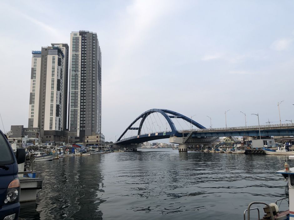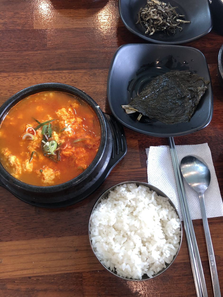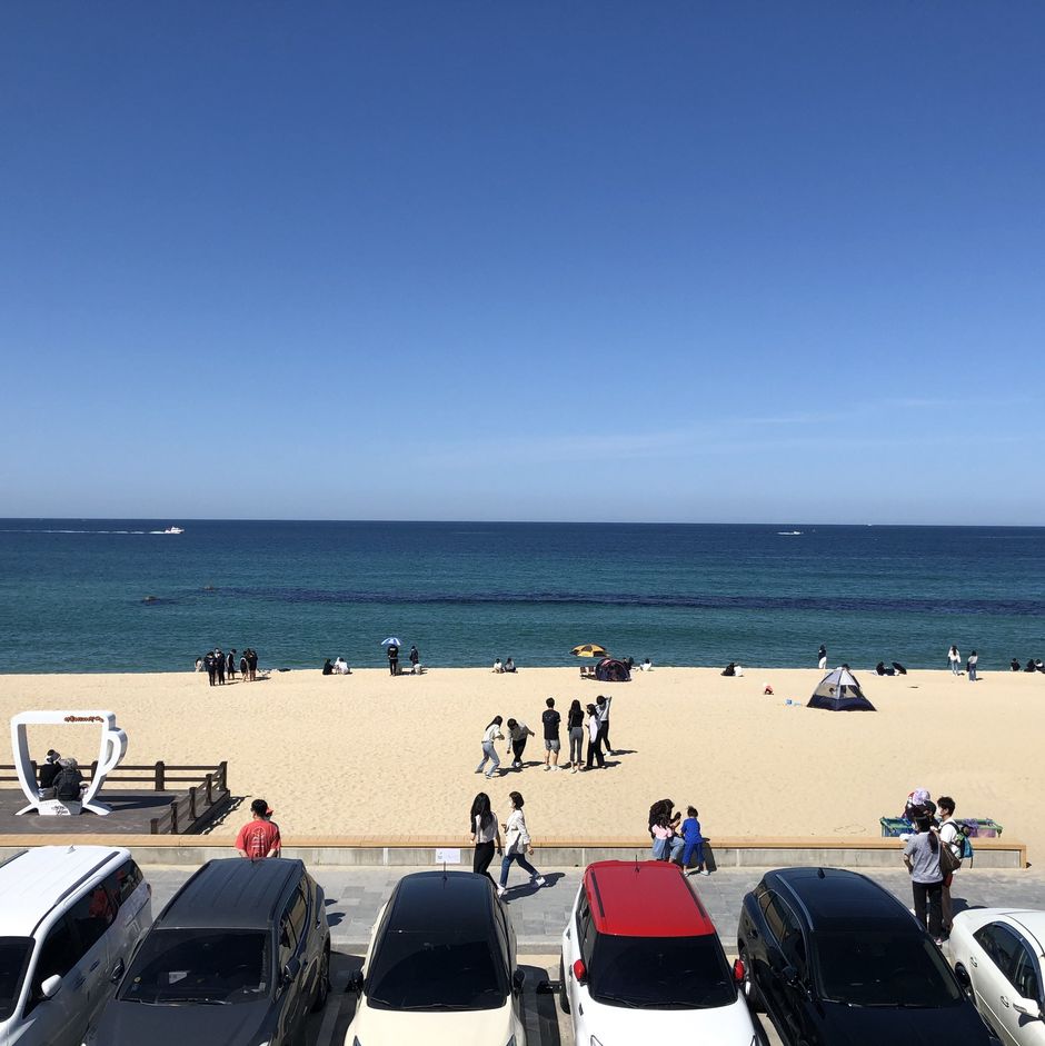 Aufgrund der Corona Krise wurde der Unterricht von Präsenz auf Online-Vorlesungen umgestellt, weshalb es uns möglich war, von allen Orten aus die Vorlesungen mitzuverfolgen, und das erleichterte die Planung für Reisen enorm, da wir 4 Leute aus 3 verschiedenen Fachrichtungen sind. Wir sind am frühen Morgen von Suwon nach Seoul gefahren und haben von dort aus einen Fernbus nach Sokcho genommen. Sokcho liegt etwa zweieinhalb Stunden von Seoul entfernt, aber je nach Verkehrslage in Seoul kann es schnell mal länger dauern, bis man ankommt. Wir hatten unsere Unterkunft in einem Guesthouse namens SokCho& Guesthouse und wurden dort sehr freundlich begrüßt und zu unserer Erleichterung sprach sie supergut English. Die Lage des Guesthouses war perfekt in der Mitte, ganz nah am Fischmarkt und ebenfalls an Strand und Stadt.