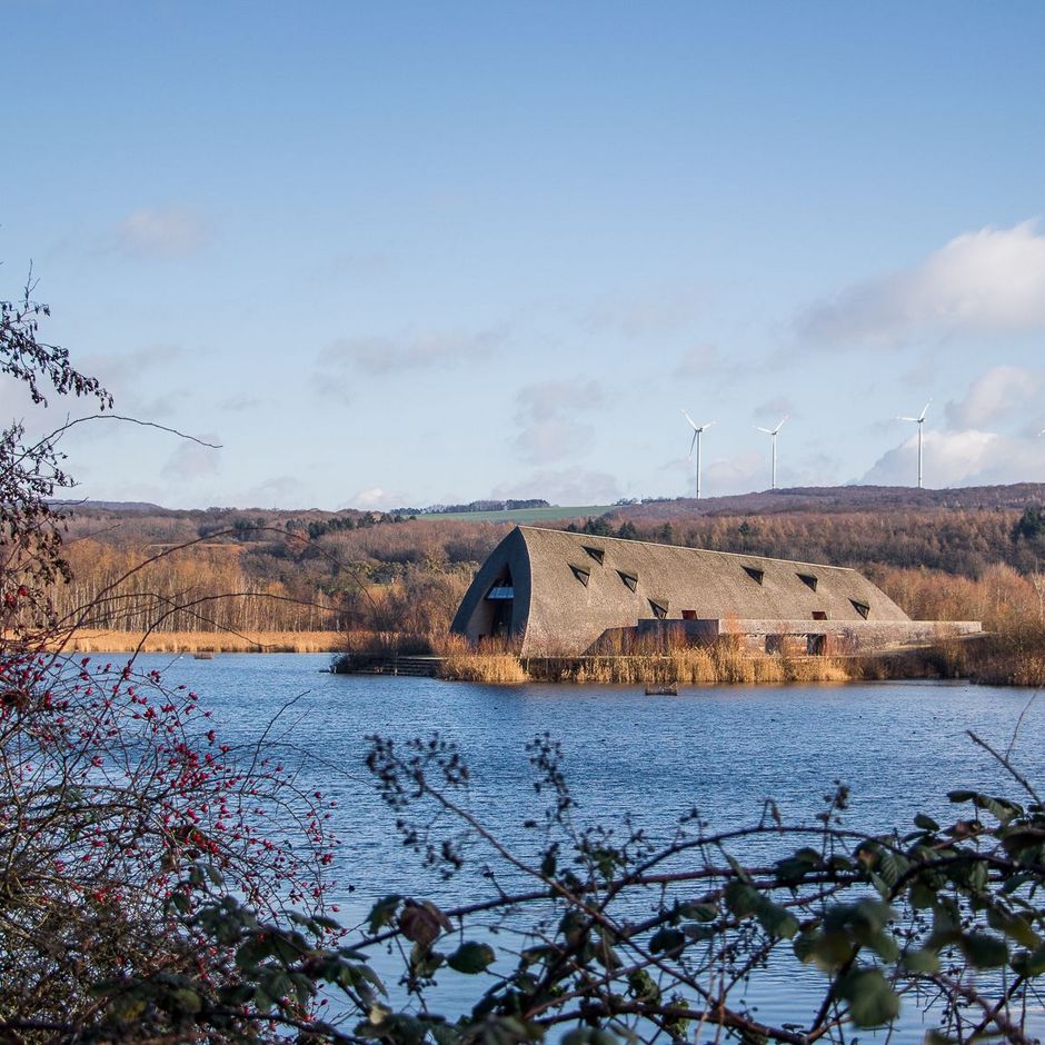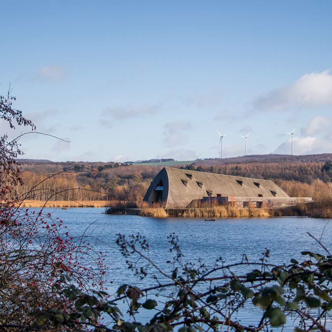 The Biodiversum is located in Remerschen, Luxembourg. It is very close to the Haff Reimech Nature Reserve. The visitor center building is quite special from its design and purpose. It has very low impact on the surrounding landscape and is purposely integrated into the cradle to cradle approach. The energy source emphasizes eco-friendly technologies and sustainability. The inside of the building exhibits taxidermied birds for information and topics related to environment awareness. The location is preferable for short walks and also surrounded by lakes for summer swims.