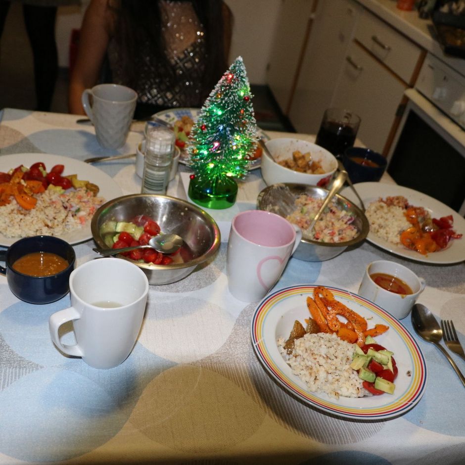 Merry Christmas!! Christmas is always about family and friends. Since most of us international students couldn't travel around to celebrate Christmas, along with four of my close friends, I decided to have a decent Christmas dinner. We made sure we had a small tree to replicate the christmas vibes in the apartment and cooked a three course dinner. For starters, I made a warm lentil soup with lots of Nepali spices. For the main course, we decided not to go very fancy. We individually cooked each element for a semi warm Buddha bowl. Desert was quite student-like, vegan ice cream with fruits. All in all we had a good time singing and dancing for hours and had a nice sleep over.