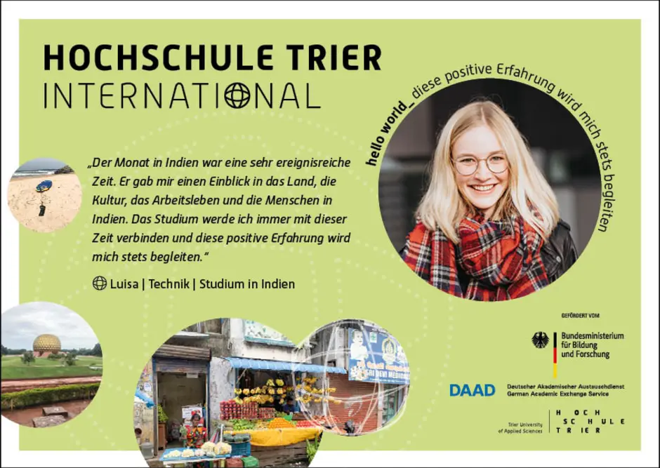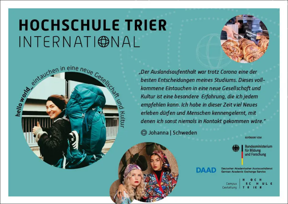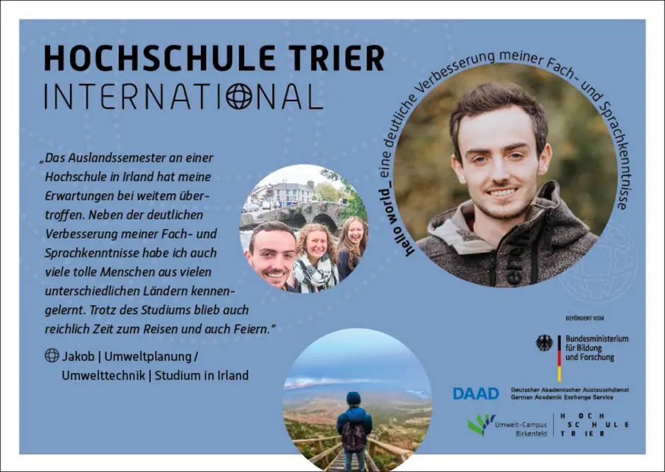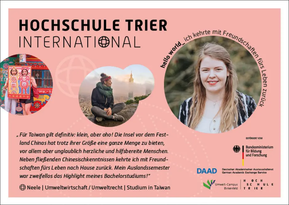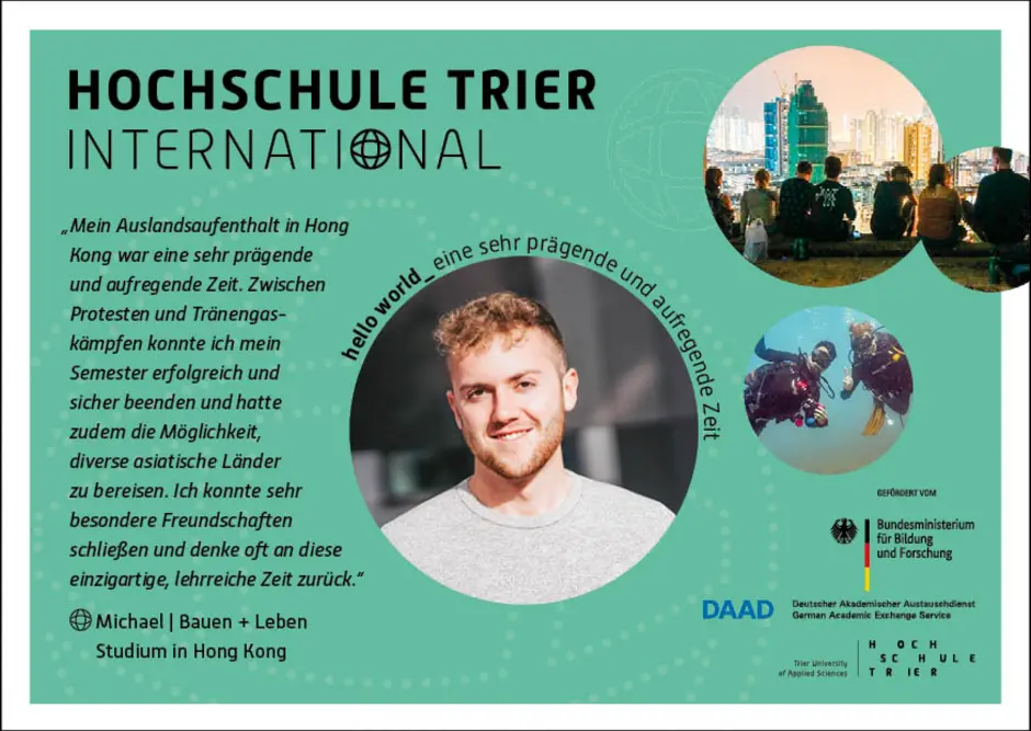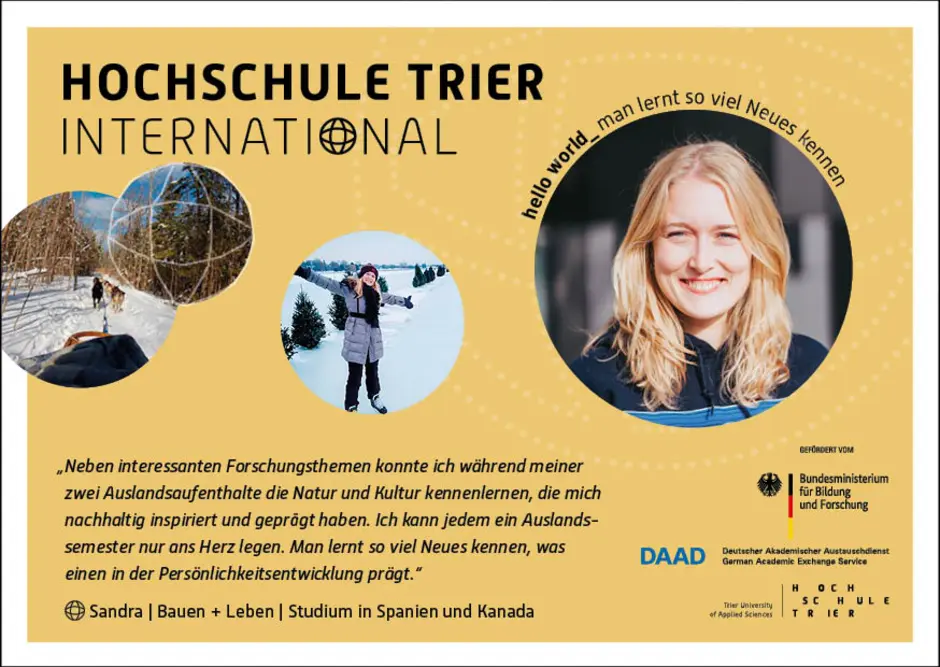Hier seht ihr eine Postkartenserie mit unseren Studierenden aus dem Ausland und unseren Studierenden, die eine Auslandserfahrung sammeln konnten. Warum die Erfahrung für sie persönlich und beruflich bereichernd war, erzählen sie hier.
