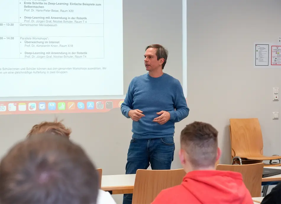 Bei Prof. Dr. Jürgen Graf und Nicolas Schuler ging es anhand einfacher Anwendungsbeispiele in der Robotik um aktuelle Trends des Deep Learnings und um das Zusammenspiel von Sensorik und Robotik.