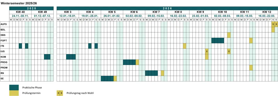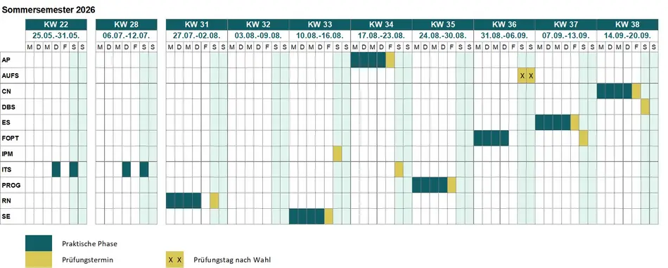 Dies ist eine Vorinformation über die Termine der praktischen Phasen und der Prüfungen des Sommersemesters 2026.