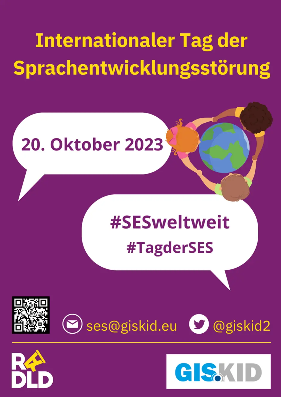 Die Hochschule Trier und der Gesundheitscampus Trier beteiligen sich neben weiteren Institutionen (https://giskid.eu/tag-der-ses-2023-programm/) an der diesjährigen Öffentlichkeitskampagne unter dem Motto "SES weltweit“ (Englisch: „DLD around the world“; https://radld.org/), die federführend von der Gesellschaft für interdisziplinäre Spracherwerbsforschung und kindliche Sprachstörungen im deutschsprachigen Raum, kurz GISKID (https://giskid.eu) koordiniert wird (Hashtags #TagDerSES und #DLDday).