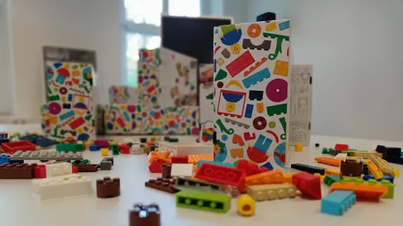 Das HCI-Labor bietet Freiräume und Hilfsmittel, um Kreativarbeit und Kollaboration zu unterstützen. Neben einem digitalen Whiteboard und einem großen mehrbenutzerfähigen Touchscreen stehen auch Papier(e), Bleistifte und Bausteine zur Verfügung. Einerseits können sich so auch Personen ohne Programmierkenntnisse an Gestaltungsprozessen beteiligen, andererseits können im Sinne von Low-Fidelity-Prototyping erste Ideen ohne größeren Programmieraufwand realisiert werden.