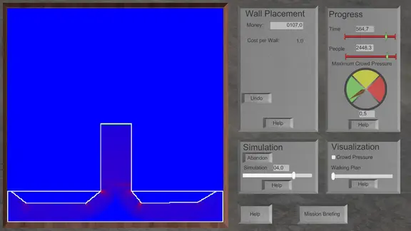 Crowd Disaster ist ein Serious Game zum Thema Menschenmengen und Unfällen mit diesen. Das Ziel des Spieles besteht darin, die grundsätzlichen Zusammenhänge von Unfällen mit Menschenmengen aufzuzeigen. Die Struktur des Spieles ist von dem Spiel Bridge Builder inspiriert. In verschiedenen vorgegebenen Situationen muss der Spieler neue Wände einziehen, um einen Unfall zu verhindern oder eine schnelle Evakuierung zu ermöglichen. Das Spiel enthält unterschiedliche Szenarien mit unterschiedlichen Randbedingungen. Zum Bestehen des Levels müssen dabei bestimmte Mindestanforderungen erfüllt werden. Grundsätzlich gibt es zwei Typen an Szenarien. Im ersten Typ ist ein Raum mit einer Menge an Personen gefüllt, die evakuiert werden müssen. Dies muss entweder in einer bestimmten Zeit oder auch zusätzlich unter Beachtung einer höchsten Unfallwahrscheinlichkeit geschehen. Im zweiten Scenario gibt es einen kontinuierlichen Zustrom von Leuten in das Scenario. Dabei darf eine bestimmte Maximalmenge an Leuten nicht überschritten werden.