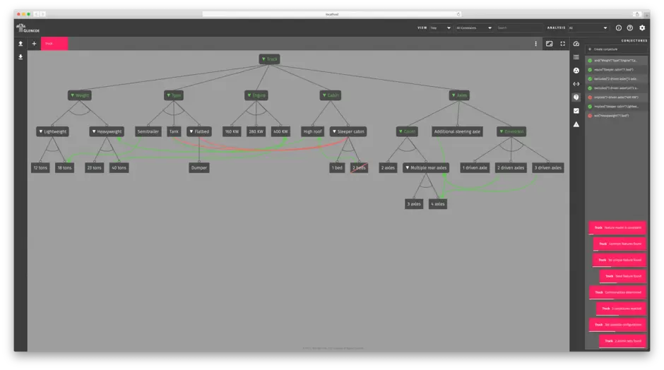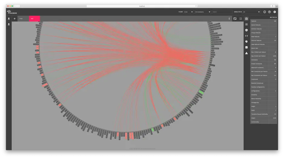 Glencoe ist eine einfach zu verwendende Web-Anwendung zur Spezifikation, Visualisierung und Analyse von Produktlinien. Sie basiert einerseits auf bekannten Lösungsansätzen und Anforderungen aus der Industrie und berücksichtigt andererseits alternative Visualisierungs- und Analysemethoden aus aktuellen Forschungsarbeiten.