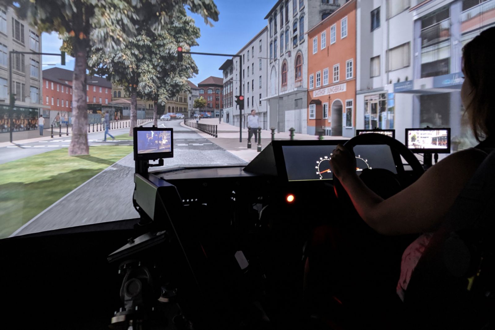 Im Fahrsimulator ist es möglich, ohne Gefährdung von Menschenleben und Gesundheit zu untersuchen, wie zuverlässig das Zusammenspiel von Mensch und Technik hierbei funktioniert. Neue Lösungen können erprobt und schrittweise verbessert werden. Die Entwicklung der erforderlichen Technologie kann unter reproduzierbaren Verkehrsbedingungen mit Einbeziehung realer Menschen erfolgen.