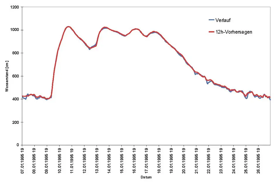 Hochwasserereignisse stellen eine große Bedrohung für anrainende Regionen dar. Um geeignete Schutzmaßnahmen ergreifen zu können, sind rechtzeitige und verläßliche Vorhersagen über den zu erwartenden Pegelverlauf erforderlich.