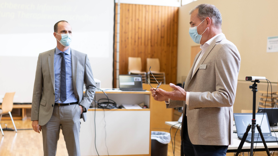 Prof. Dr. Heinz Schmitz – Dekan des Fachbereichs Informatik - erläuterte die Interdisziplinarität des Fachbereichs mit den zwei Fachrichtungen Informatik und Therapiewissenschaften. "Insbesondere mit Hilfe der Schlüsseltechnologien Künstliche Intelligenz und Augmented Reality werden die beiden Disziplinen wechselseitig noch stärker von ihrer Zusammenarbeit profitieren. Aktuelle Projekte im Fachbereich beschäftigen sich genau damit“, so Schmitz.