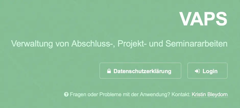 Projekte und Abschlussarbeiten im Fachbereich Informatik werden über das VAPS-System verwaltet. Es bietet den an einer Arbeit beteiligten Akteuren Möglichkeiten zur Überwachung und Veränderung des Zustandes der Arbeit.