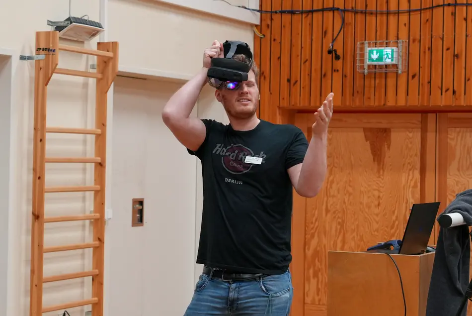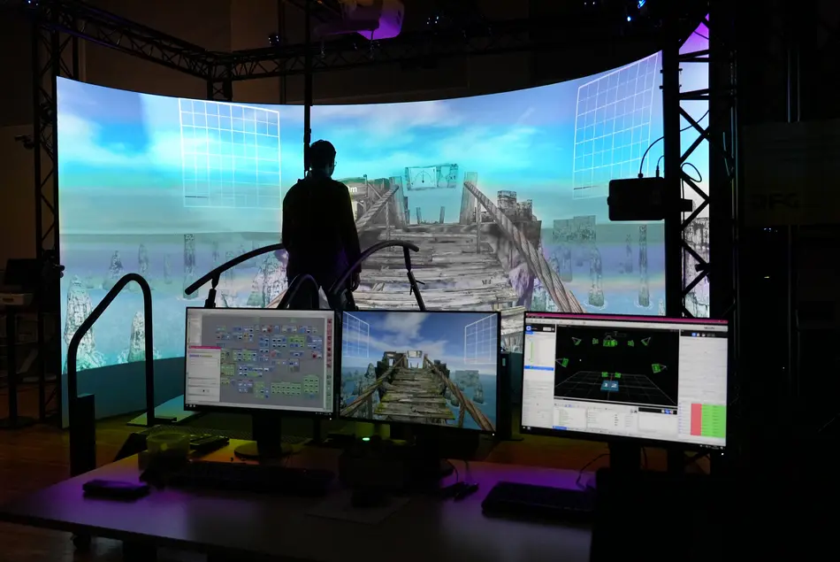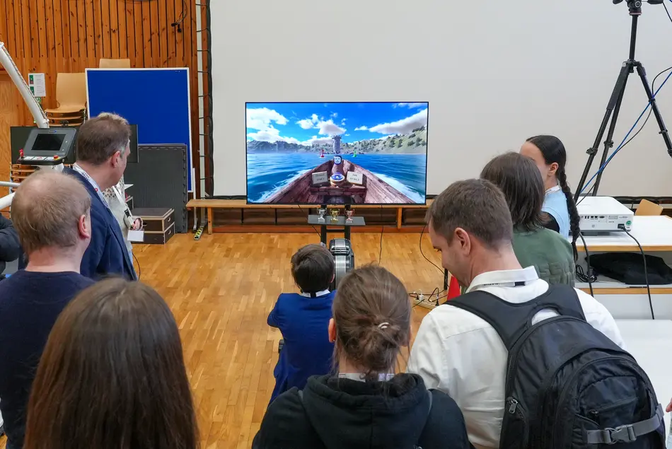 Den Auftakt machte Prof. Dr. Lürig mit der „Brain-Row Challenge“. Auf einem Ruderergometer ruderten die Teilnehmer und Teilnehmerinnen durch Tore auf einem fotorealistischen virtuellen nordischen See und beantworteten dabei Multiple-Choice-Fragen. Diese einzigartige Kombination aus körperlicher und geistiger Stimulation soll zukünftig bei der Diagnose und Behandlung neurodegenerativer Erkrankungen wie Parkinson eingesetzt werden.