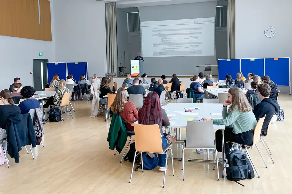 In der Aula der Hochschule Trier kamen über 50 Studierende der Klinischen Pflege (B.Sc.) der Universität Trier, der Humanmedizin des Medizincampus Trier sowie der Ergotherapie (dual B.Sc.), Logopädie (dual B.Sc.) und Physiotherapie (dual B.Sc.) der Hochschule Trier zu dieser Veranstaltung zusammen.