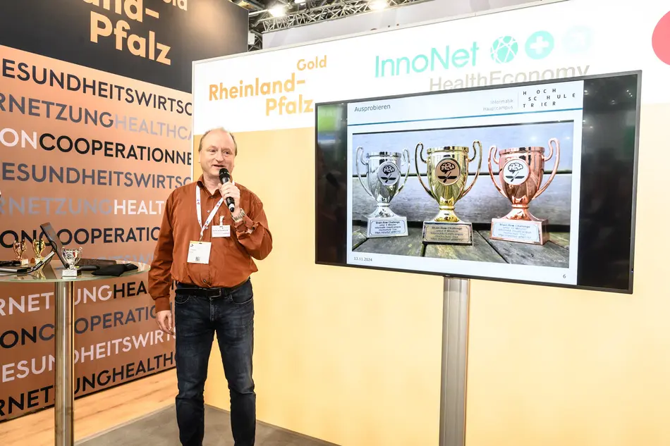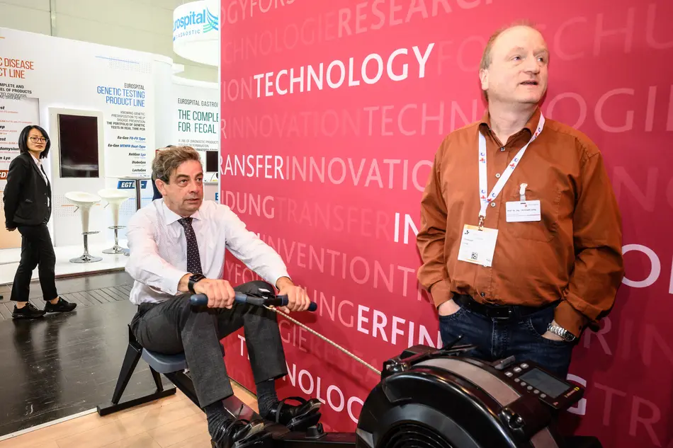Die Professoren Dr. Christoph Lürig, Dr. Sven Karstens und Dr. Tilo Mentler präsentierten auf der Messe den Dual-Task Trainer „Brain-Row Challenge“. Dieses innovative Konzept verbindet körperliche Fitness mit mentaler Stimulation in einem unterhaltsamen und effektiven Training. Am Messestand hatten die Besucher nicht nur die Möglichkeit, sich umfassend über das Rudergerät zu informieren, sondern es auch selbst auszuprobieren. Wer an der Challenge teilnahm, konnte kleine Pokale als Auszeichnung für seinen Erfolg gewinnen.