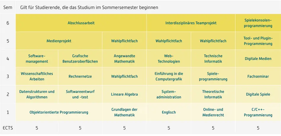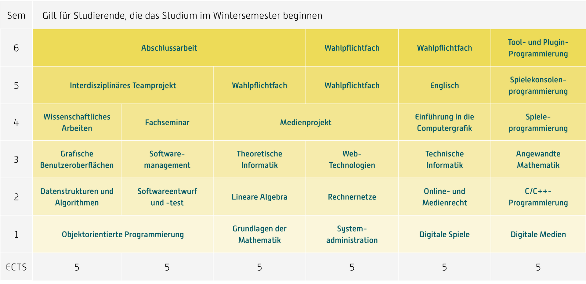 Als Einsteiger bewirbt man sich in der Branche als Programmer oder Artist. Der Job des Designers oder Producers setzt in der Regel langjährige Berufs- und Branchenerfahrung voraus. Man muss sich entscheiden, welche Disziplin zu den eigenen Interessen und Fähigkeiten passt. In dem Studiengang Digitale Medien und Spiele mit der Vertiefungsrichtung Spiele werden Sie in dem Bereich Game Programming ausgebildet. Die anderen drei Bereiche werden nur kurz angerissen, um sich später mit Vertretern der anderen Bereiche verständigen zu können.