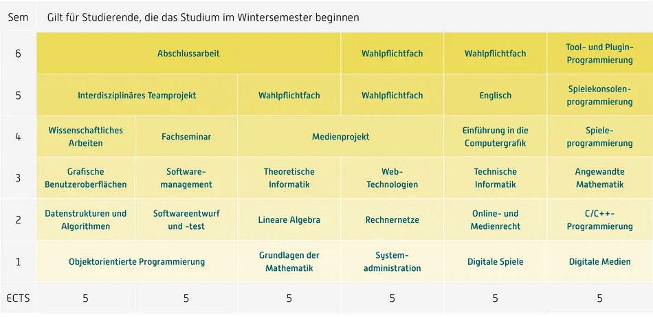 Der Bachelor-Studiengang hat eine Regelstudienzeit von sechs Semestern.
