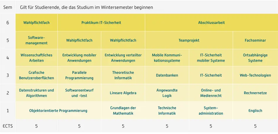 Der Bachelor-Studiengang hat eine Regelstudienzeit von sechs Semestern.