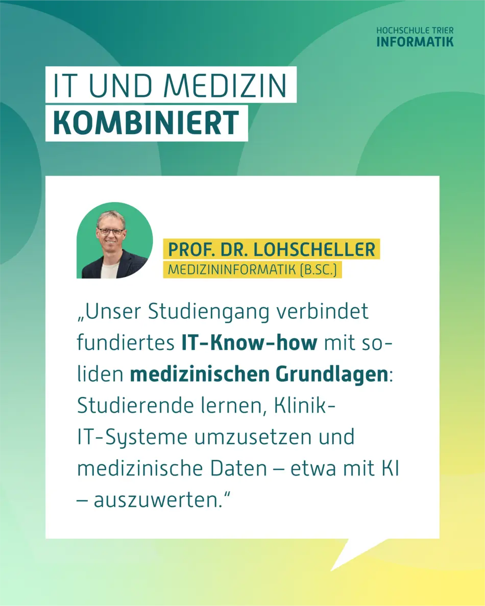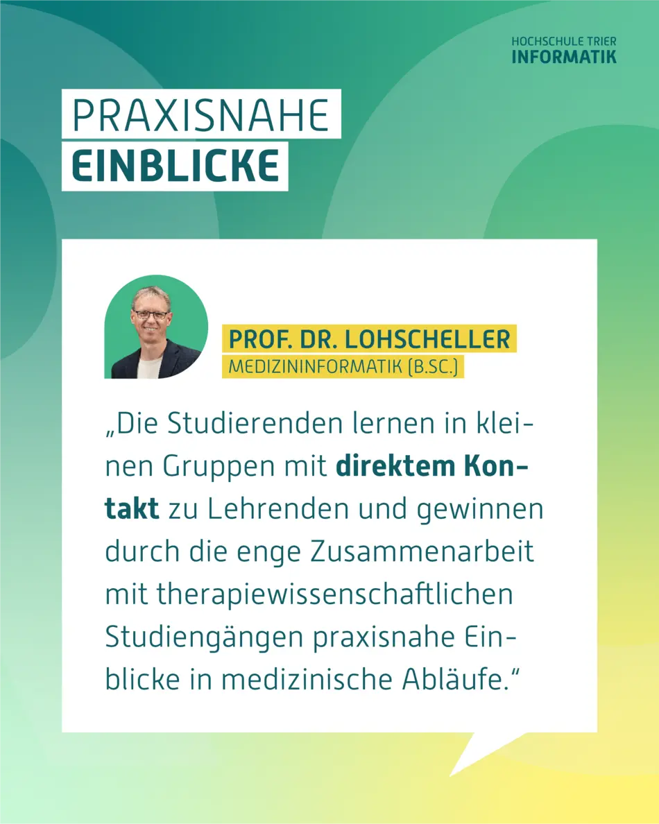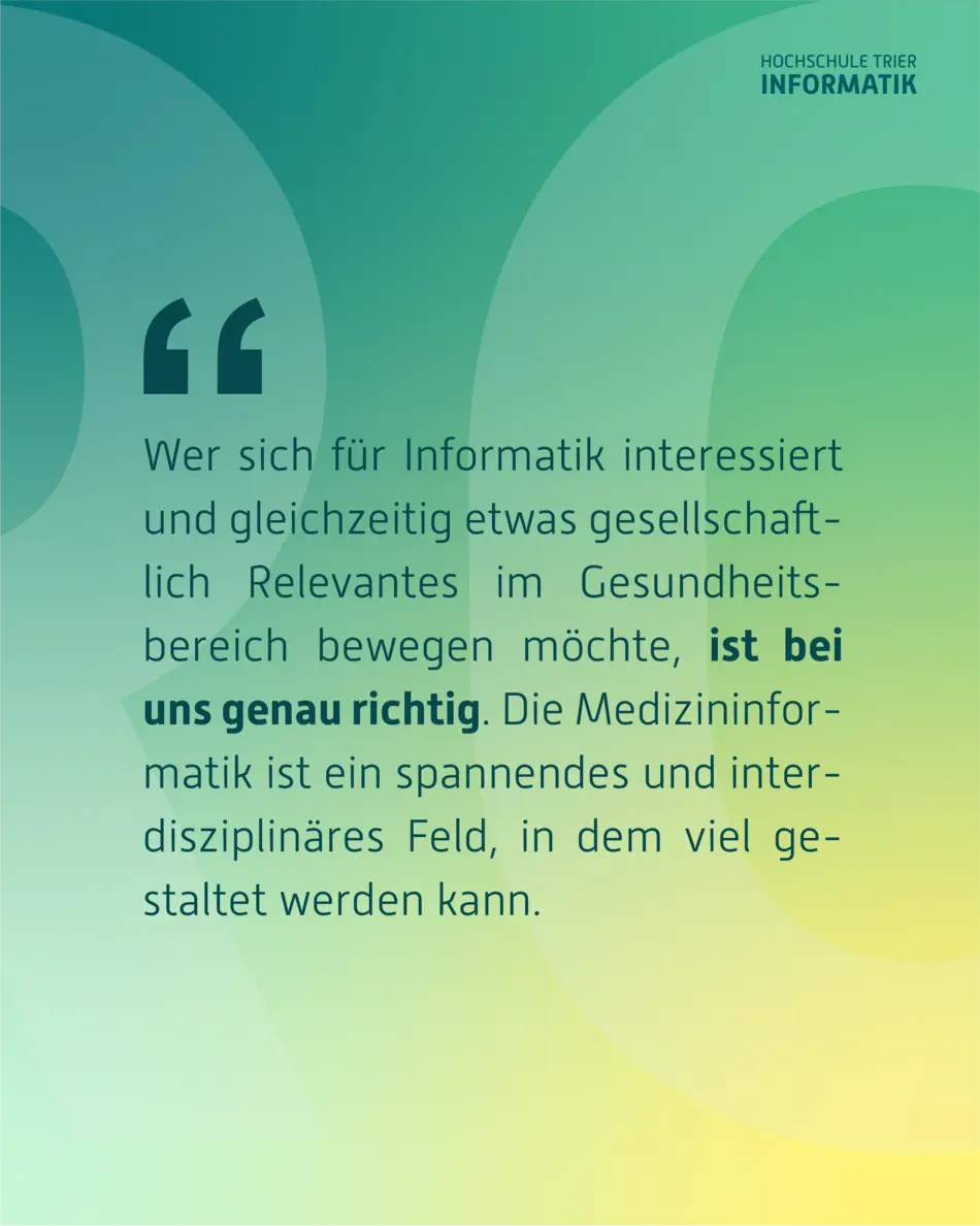 Kurz gesagt: Wer bei uns Medizininformatik studiert, ist bestens vorbereitet, die digitale Transformation des Gesundheitswesens aktiv mitzugestalten.