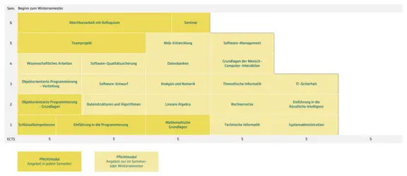 Alle Absolventen des Fachbereichs werden unabhängig von ihrer individuellen Spezialisierung in gleichem Maße auf softwareorientierte Berufsbilder mit wechselnden Anforderungen im IT-Arbeitsmarkt vorbereitet. Dies erreichen wir durch einen für alle Bachelor-Studiengänge identischen Kern des Studienablaufplans.