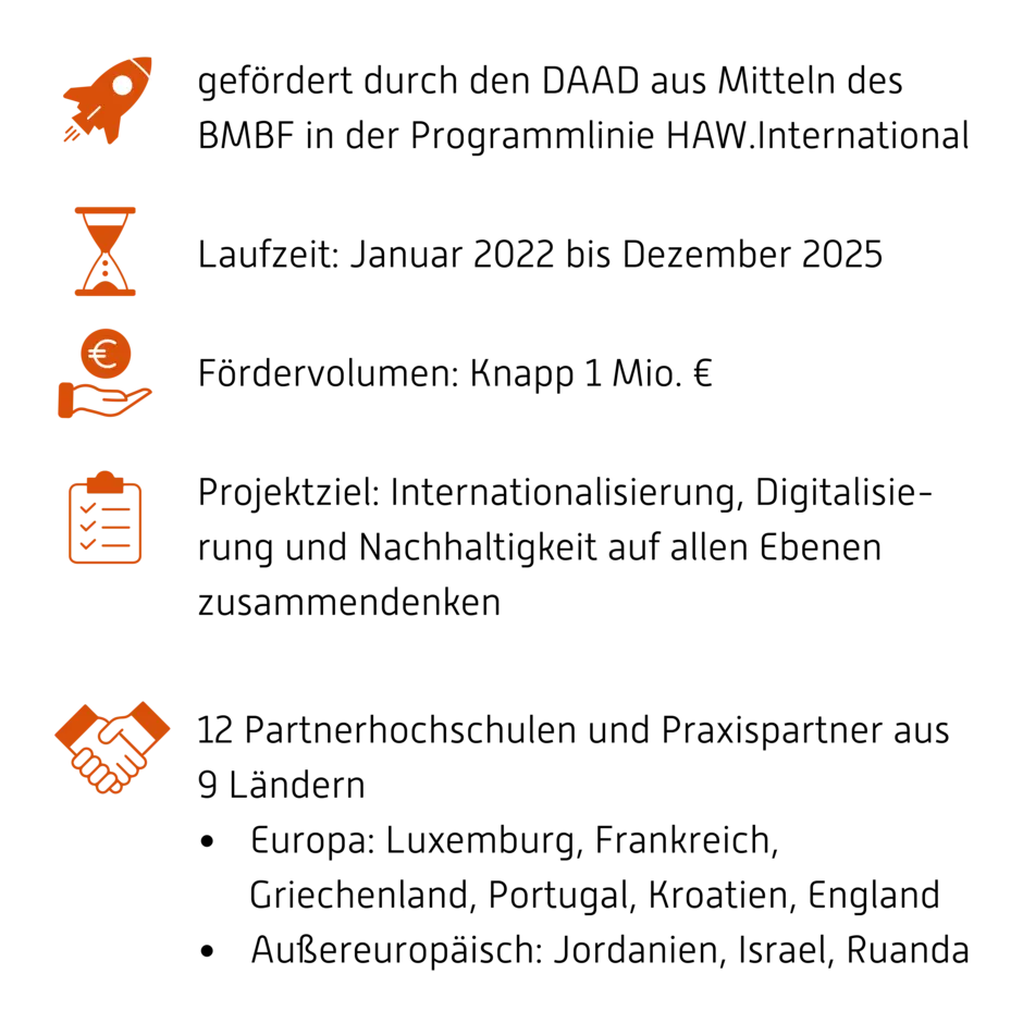 In dem Projekt „Hochschule Trier International: Global Innovation for Sustainable Futures“, das zwischen 2022 bis 2025 mit einem Fördervolumen von knapp 1 Mio. Euro gefördert wird, verknüpft die Hochschule Trier die drei Zukunftsthemen Internationalisierung, Digitalisierung und nachhaltige Entwicklung.