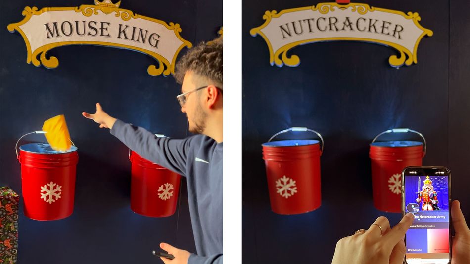 Jede Studierendengruppe erweckte eine von vier Szenen aus „Der Nussknacker“ zum Leben. Prof. Christopher Ledwig beschrieb, wie hilfreich es für ihn und seine Studierenden war, neben den COIL-Sitzungen auch persönlich anwesend zu sein, um beim Aufbau der Ausstellungen dabei zu sein. „Vorher war es eigentlich sehr theoretisch. Wir wussten nicht wirklich, wie der Kontext war, wie der Raum aussah, der Platz und alles. Es ist eine sehr wertvolle Erfahrung, die digitale und Präsenz-Zusammenarbeit im direkten Vergleich zu erleben“, sagte Ledwig.