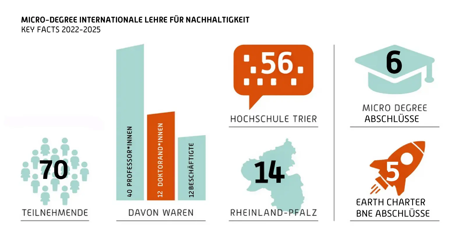 Lehrkräfte, die an mindestens drei der vier Module teilnehmen und im Anschluss ein Konzept für eine neue internationale Lehrveranstaltung als Abschlussarbeit entwickeln, erhalten das Micro-Degree. Alternativ können auch einzelne Module nach persönlicher Interessenslage belegt werden. Die Trainingsreihe soll damit nachhaltig die internationale Lehre und die Integration von SDG-bezogenen Lehrinhalten in die Curricula als auch den Einsatz digitaler Formate stärken.