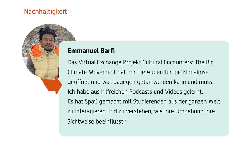 Virtuelle internationale Gastvorträge von Hochschul- und Praxispartnern aus Industrie, Wirtschaft und Gesellschaft erweitern die internationalen Perspektiven in der Lehre auf einfache, aber sehr effektive Weise. Sie stärken darüber hinaus sowohl das Netzwerk der Studierenden und Lehrenden als auch den transsektoralen Wissensaustausch. Zur stärkeren Einbindung von internationalen SDG-Bezügen werden daher im Rahmen des Projekts ab 2023 jährlich fachbereichsübergreifend Honorarmittel für virtuelle Gastvorträge vergeben.